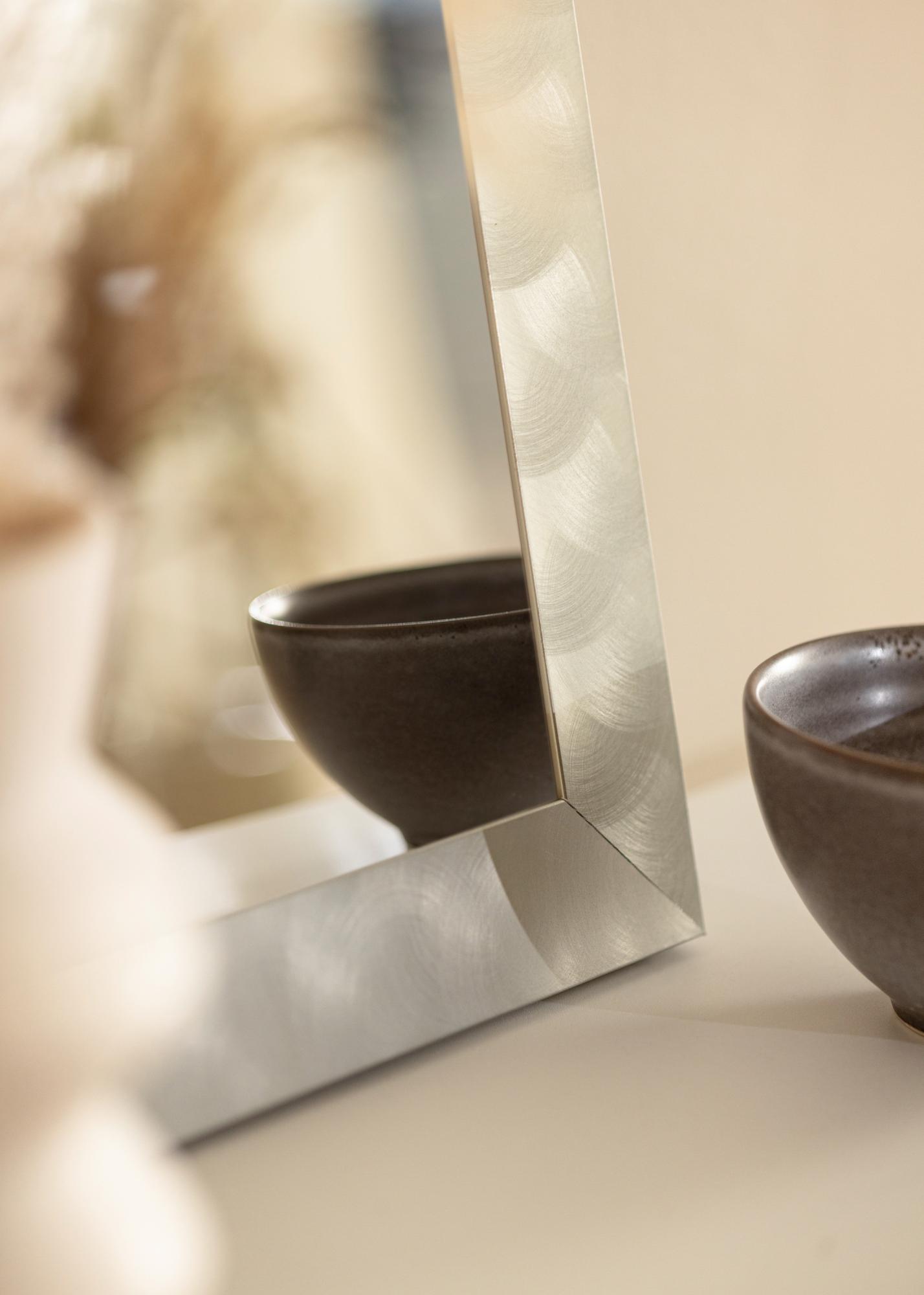 Espelho discreto com uma moldura larga e lisa fabricada na Alemanha em alumínio de alta qualidade. A moldura tem uma aparência de aço vivo claro e, com a sua linguagem de design limpa, o espelho se encaixa bem tanto em casas minimalistas quanto rurais e se adapta a todos os tipos de ambientes. Pendure o espelho em um quarto com quadros com molduras prateadas ou pretas e combine com acessórios de decoração em tons de cinzento para manter a decoração unida.