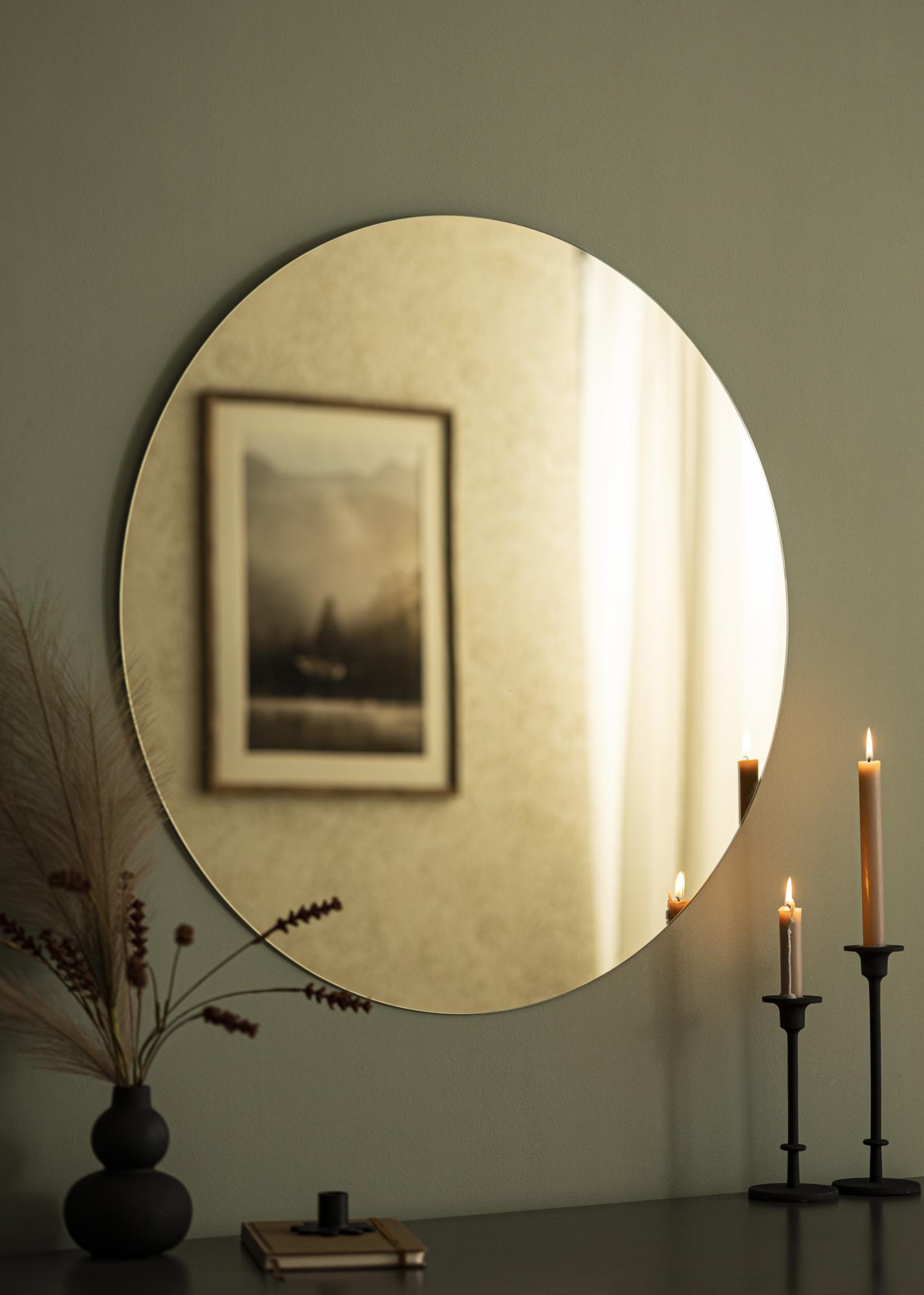 A tonalidade champanhe é uma cor luxuosa, então se está à procura de um espelho exclusivo, esta é a escolha certa. Este espelho de parede redondo tem vidro de espelho fino e um design elegante sem moldura. O espelho tem 80 cm de diâmetro.