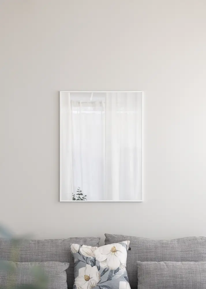 Este espelho de parede é uma combinação perfeita de estilo e funcionalidade. A moldura é feita de alumínio e tem apenas 10 mm de largura, o que confere uma expressão elegante e minimalista. O espelho faz parte de uma série de espelhos de parede em diferentes cores e tamanhos.