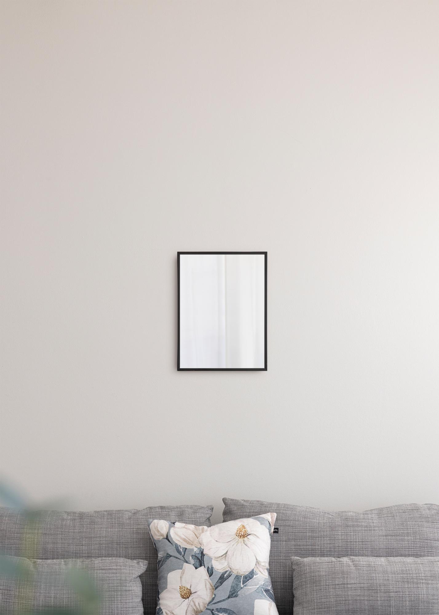 Este espelho de parede é uma combinação perfeita de estilo e funcionalidade. A moldura é feita de alumínio e tem apenas 10 mm de largura, o que confere uma expressão elegante e minimalista. O espelho faz parte de uma série de espelhos de parede em diferentes cores e tamanhos.