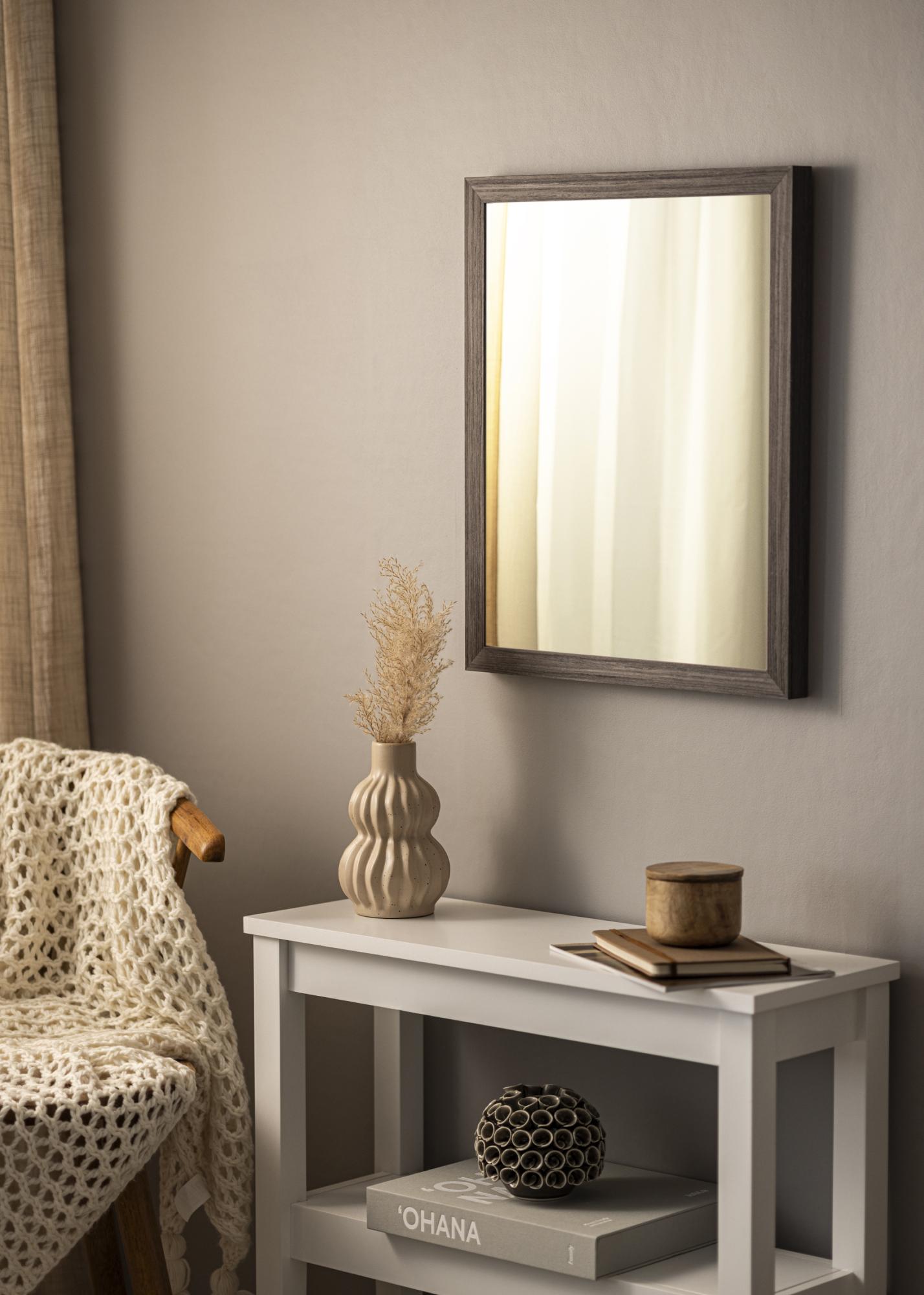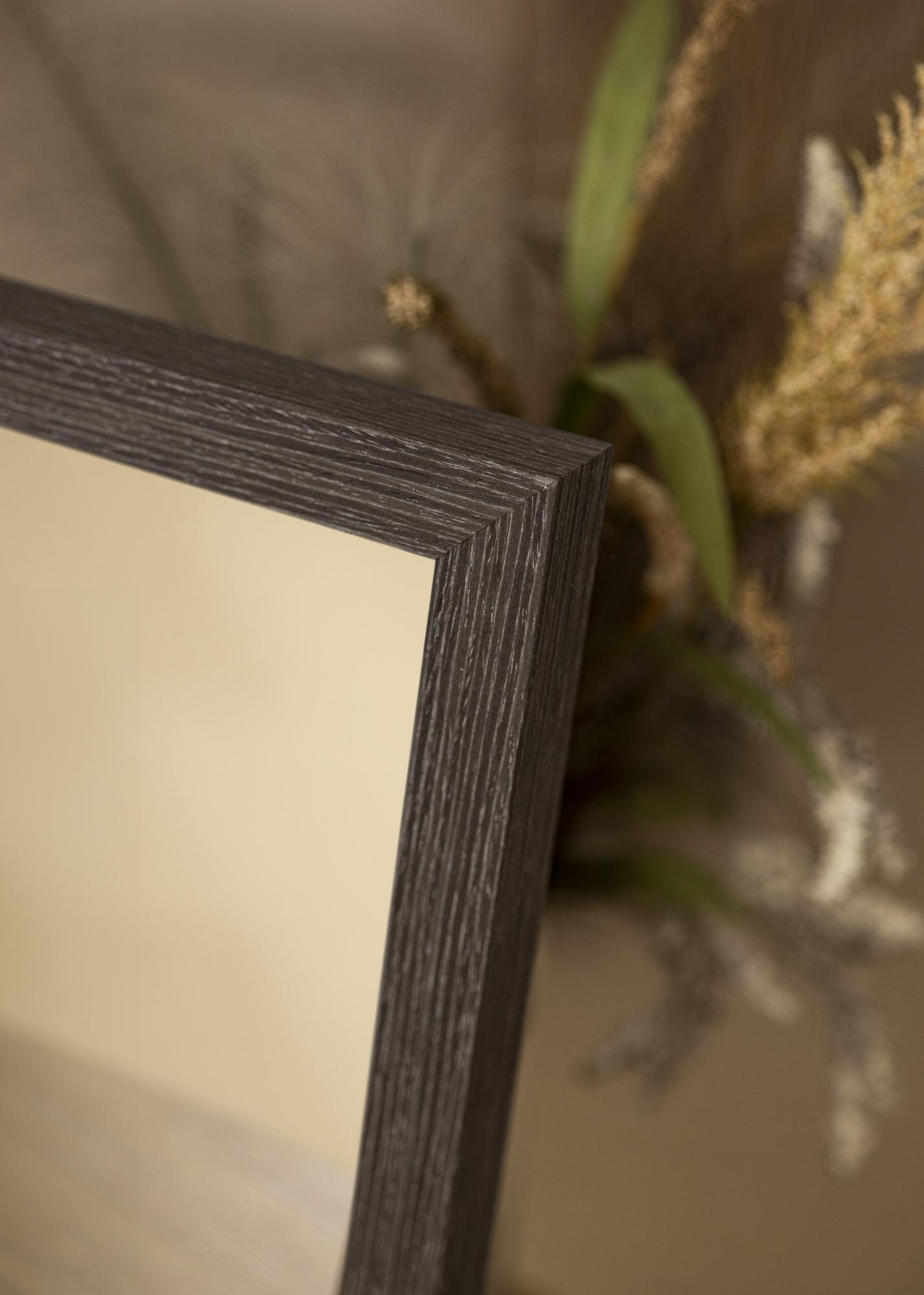 Espelho Cotswold Cinza é um espelho feito sob medida que fabricamos para atender às suas necessidades específicas. Com sua moldura de 28 mm de largura e uma profundidade de 33 mm, este espelho oferece o equilíbrio perfeito entre funcionalidade e estética. A moldura é feita de pinho e possui um acabamento escuro de madeira com uma estrutura claramente granulada, o que reforça sua aparência natural e dá ao ambiente uma sensação acolhedora e convidativa.