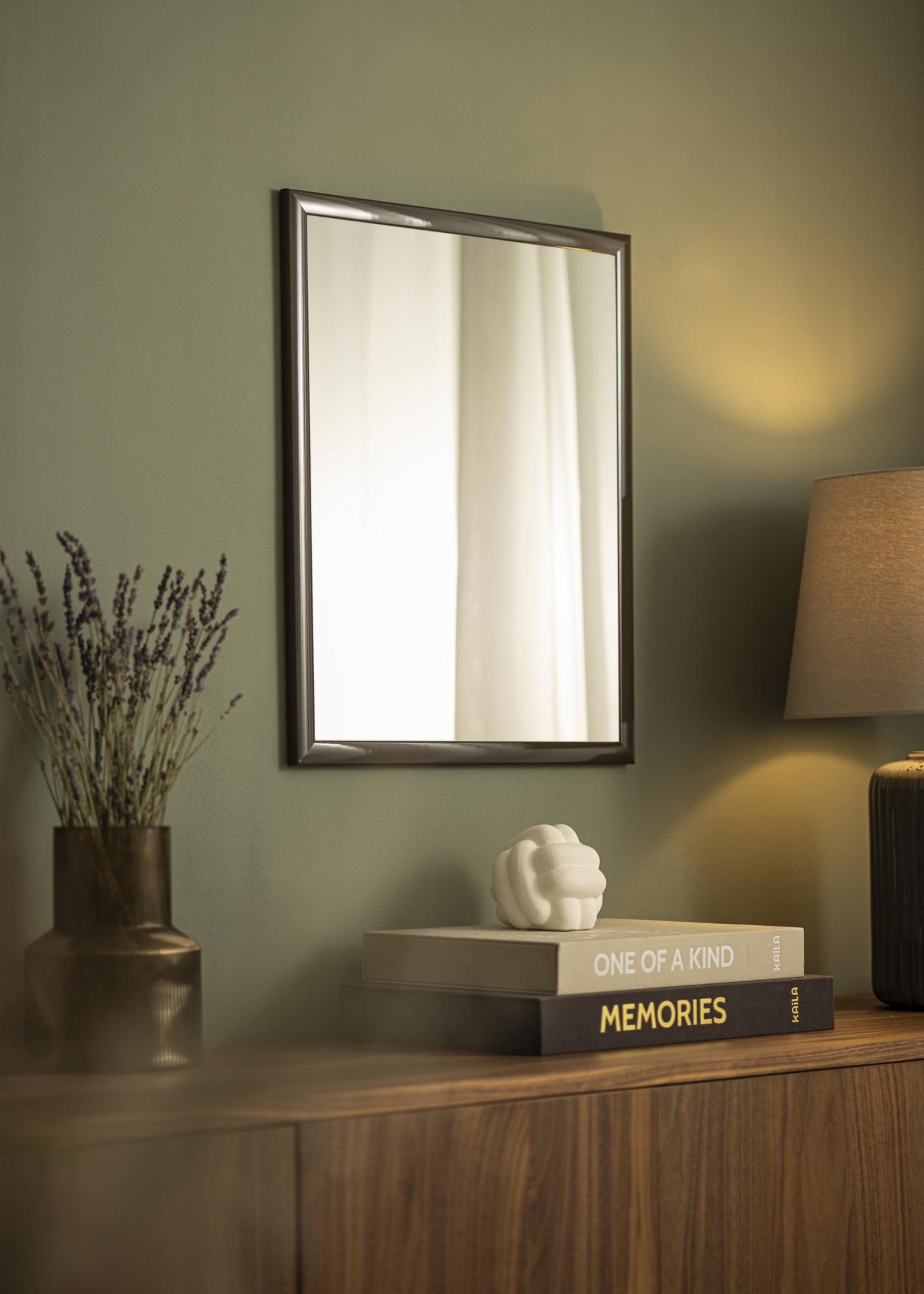 Com sua cor cinza escuro e acabamento de alto brilho, o Espelho Dorset oferece uma superfície elegante e refletiva que realmente chama a atenção. A pintura suave reforça a profundidade da cor e cria uma expressão vibrante que dá ao ambiente uma sensação sofisticada. A superfície brilhante captura a luz de uma maneira que oferece um brilho dinâmico dependendo do ângulo, tornando o espelho uma peça central da decoração.