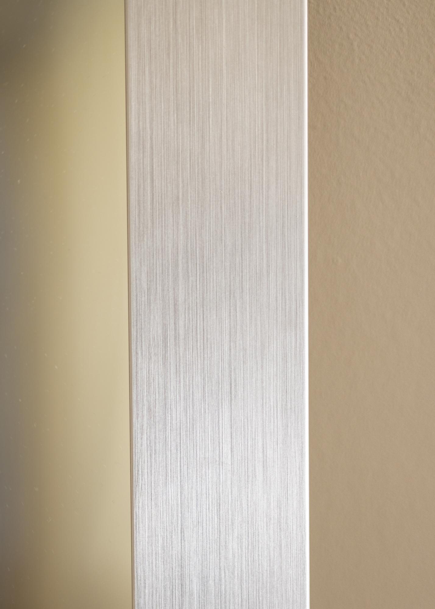 A moldura do Espelho Dover Liso Prata tem 69 mm de largura e 22 mm de profundidade, o que confere ao espelho uma sensação robusta e sólida. Fabricado em madeira ayous, combina durabilidade com estética, tornando-se um complemento duradouro para sua casa. A textura sutil no acabamento prata escovado cria uma sensação elegante e moderna que pode ser facilmente combinada com diferentes estilos de decoração.