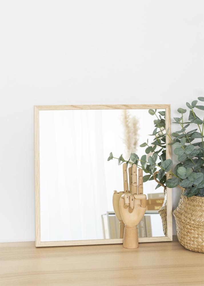 Este é um espelho de parede com uma moldura de madeira fina, que se adequa perfeitamente a casas modernas e mais boêmias. O espelho é uma exibição do melhor do design escandinavo, com vidro de espelho incolor e uma moldura de madeira clara com perfil reto, que juntos proporcionam um aspecto claro e elegante.