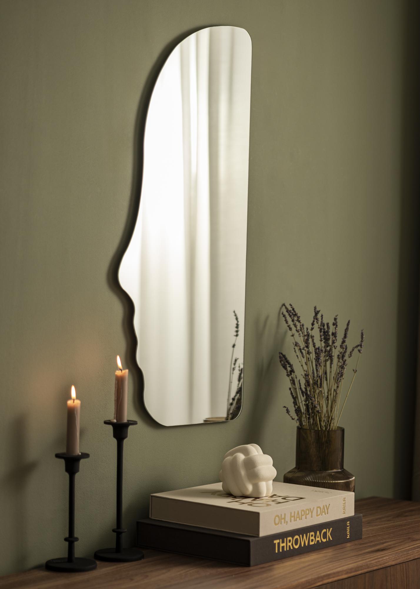 Descubra um detalhe exclusivo e elegante para sua casa com nosso espelho assimétrico. Com suas linhas sinuosas e forma pessoal, que lembra a silhueta de uma pessoa, este espelho se torna um ponto artístico em qualquer cômodo. Não é apenas um objeto funcional, mas também uma expressão de individualidade e senso de design.
