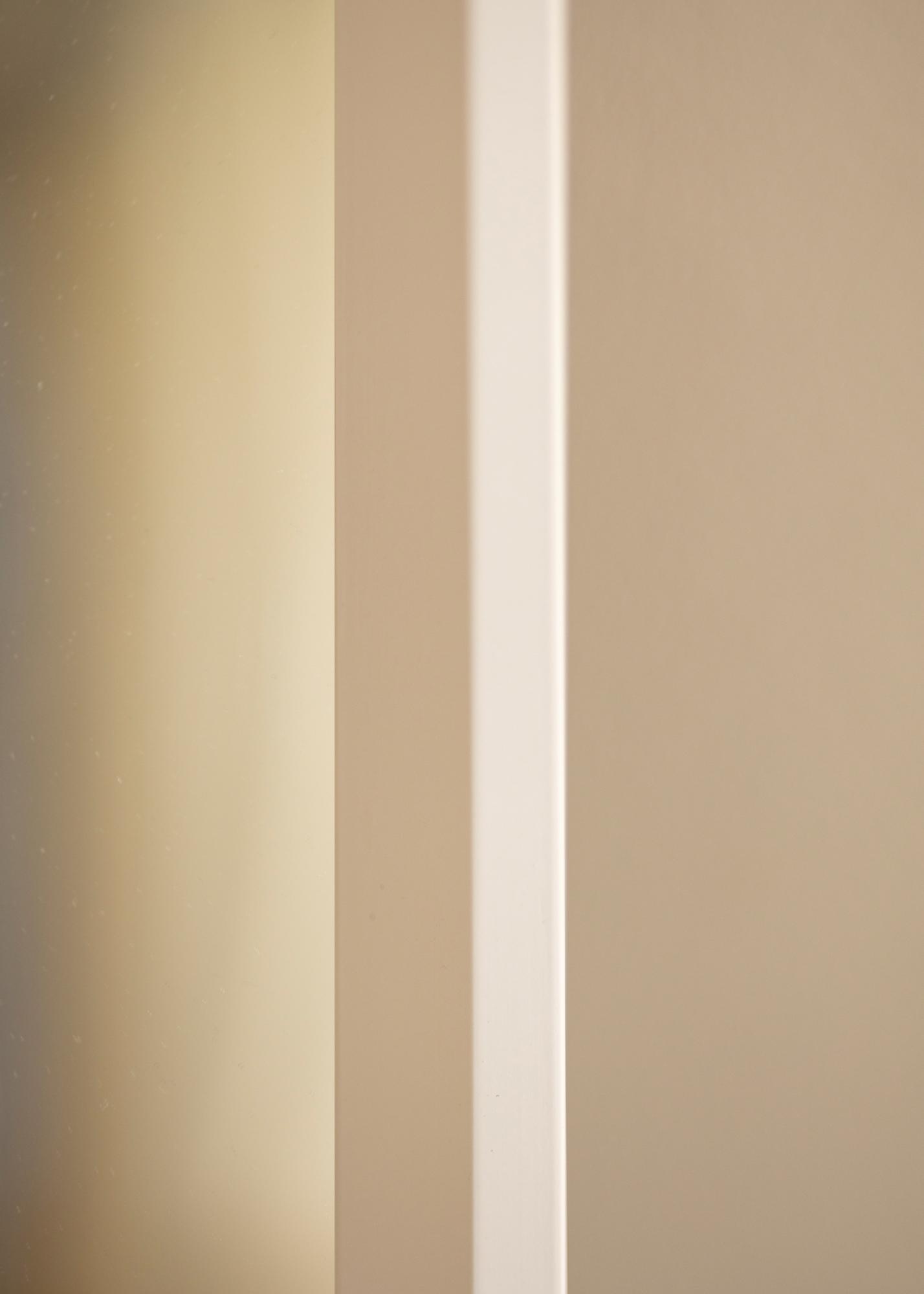 Espelho moderno em branco que funciona igualmente bem em tamanhos mais pequenas numa galeria de parede ou como um grande espelho de entrada.