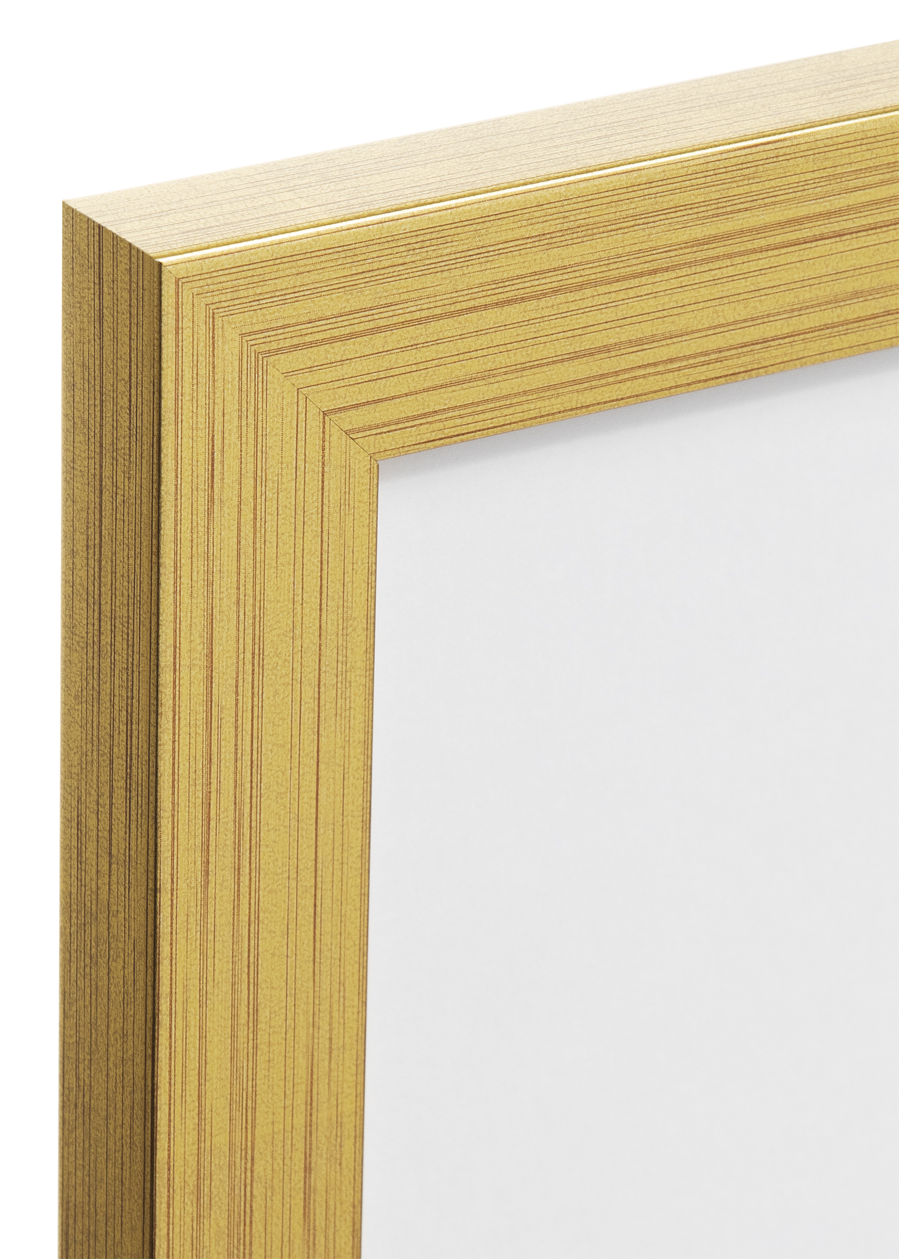 Uma moldura dourada simples de 22 mm é perfeita quando quer ter um espelho elegante em qualquer formato. Também é perfeito como um detalhe elegante na sua galeria de parede.