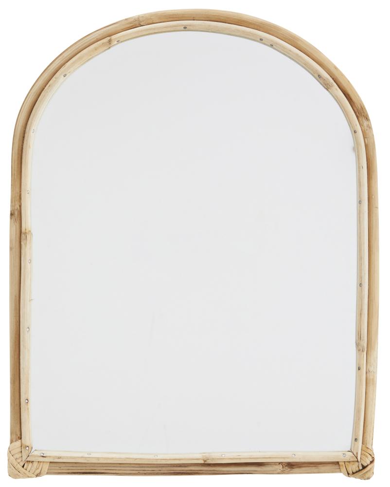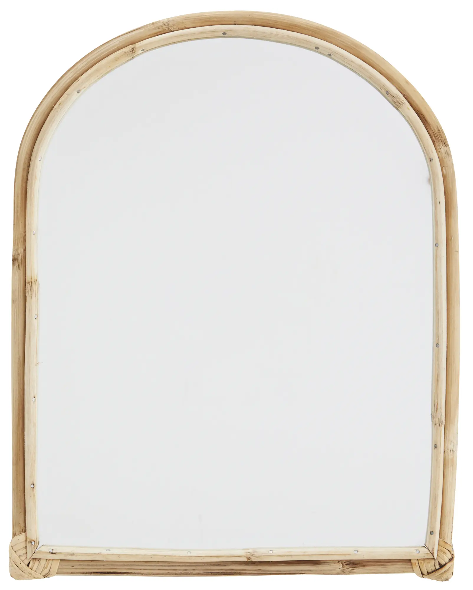 Espelho em forma de arco da Madam Stoltz, que se torna um detalhe elegante em todas as divisões da casa. O espelho tem uma forma elegante de meia-oval com uma moldura de bambu. A combinação de bambu e vidro espelhado é boêmia e natural, ao mesmo tempo em que o espelho adquire uma modernidade fresca ao seu redor. O espelho de parede tem uma medida de 36x47 cm. É feito de material natural, o que faz com que cada item individual possa variar um pouco em aparência.