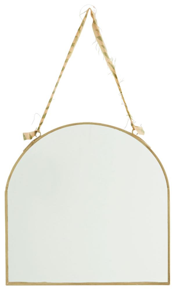 Espelho em forma de arco da Madam Stoltz, com moldura em cor latão. O espelho é pendurado em uma fita de algodão, o que confere-lhe uma expressão boêmia que combina perfeitamente em salas de estar e quartos. O espelho de parede mede 23x23 cm. O tamanho compacto faz com que o espelho de parede seja super elegante para combinar com outros modelos de espelho.
