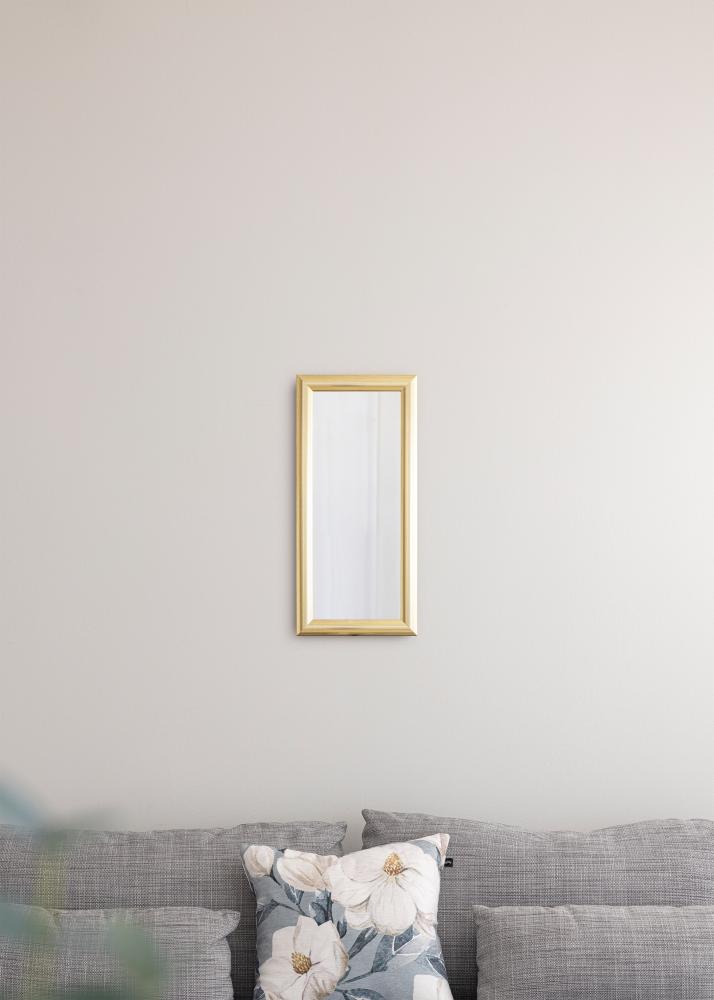 Deixe este espelho de parede se tornar um luxuoso detalhe de decoração em sua casa. ele encaixa-se bem em quase todas as divisões - então pendure-o no quarto, na entrada ou na sala de estar e deixe-o refletir a luz natural do ambiente. Em alguns casos, um espelho de parede também pode fazer o ambiente parecer maior. Este espelho possui uma moldura de madeira dourada de 30 mm de largura, o que proporciona uma expressão luxuosa.