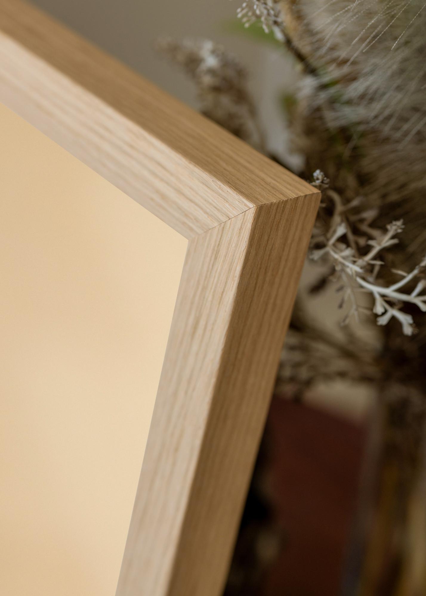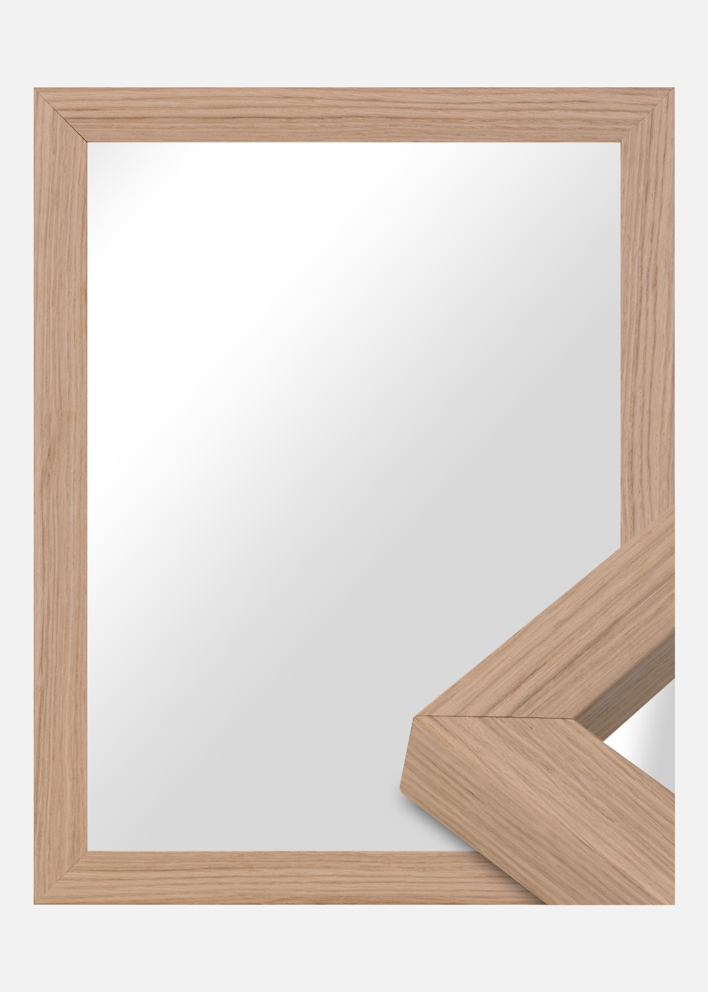 A moldura é feita de pinho, o que a torna tanto durável quanto leve. A profundidade de 32 mm proporciona ao espelho uma construção estável e garante que ele fique seguro na parede. O tom quente da textura de carvalho destaca o design intemporal do espelho, facilitando a sua combinação com diferentes estilos de decoração.