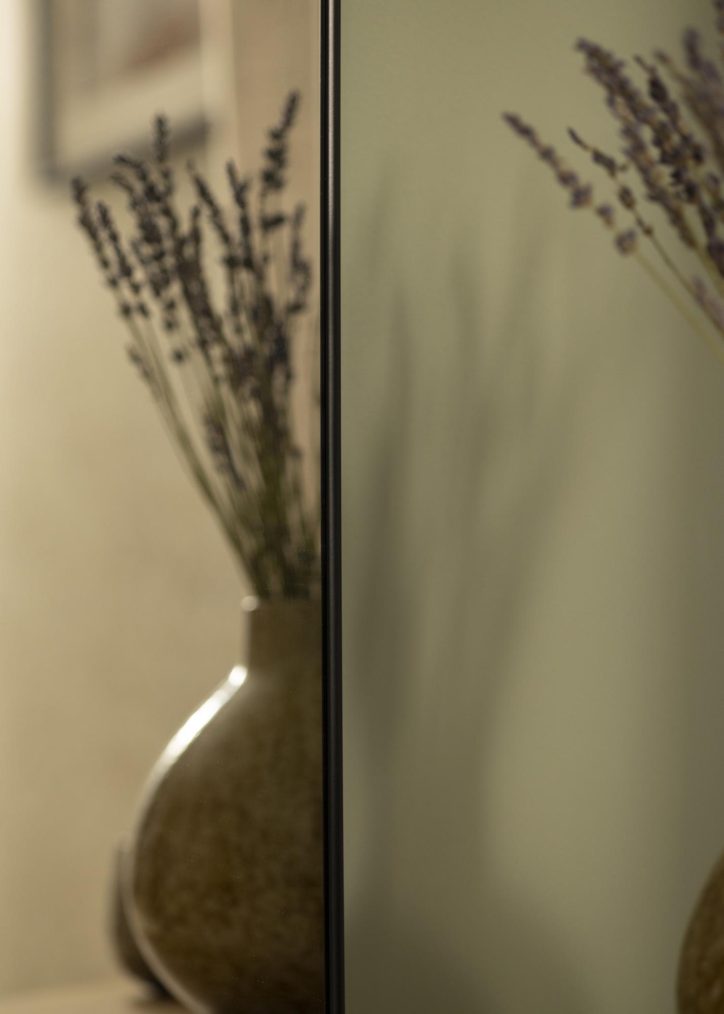 Com suas linhas limpas e a moldura preta atemporal, este espelho oferece uma combinação de funcionalidade e estética. Não é apenas um objeto prático para o uso diário, mas também um elemento artístico que aprimora o design geral do ambiente. Deixe este espelho se tornar o ponto central da sua casa e reflita tanto o seu estilo quanto a sua beleza.