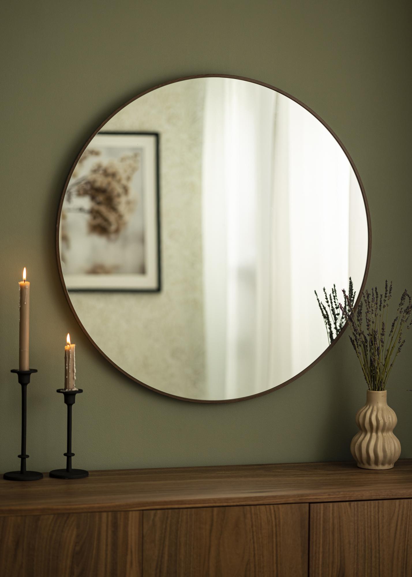 Descubra a elegância elegante com o nosso espelho suspenso de parede, perfeito para adicionar uma sensação de espaço e luz à sua casa. Com um impressionante diâmetro de 80 cm, este espelho se torna o foco imediato em qualquer cômodo. Sua forma redonda dá uma sensação suave e acolhedora, ao mesmo tempo que a moldura de alumínio na cor noz confere um toque de sofisticação.