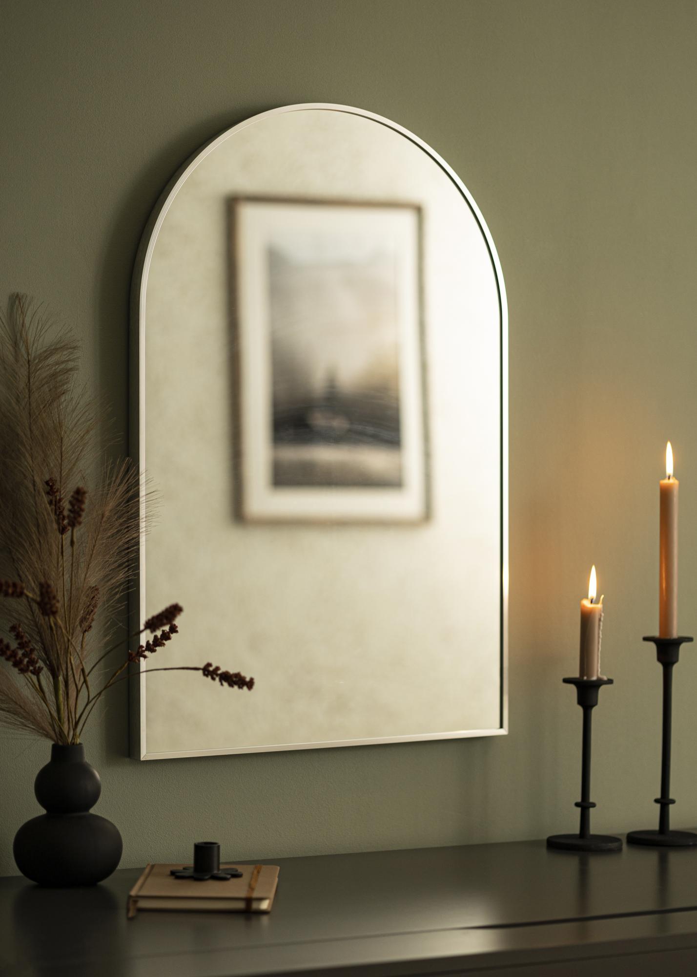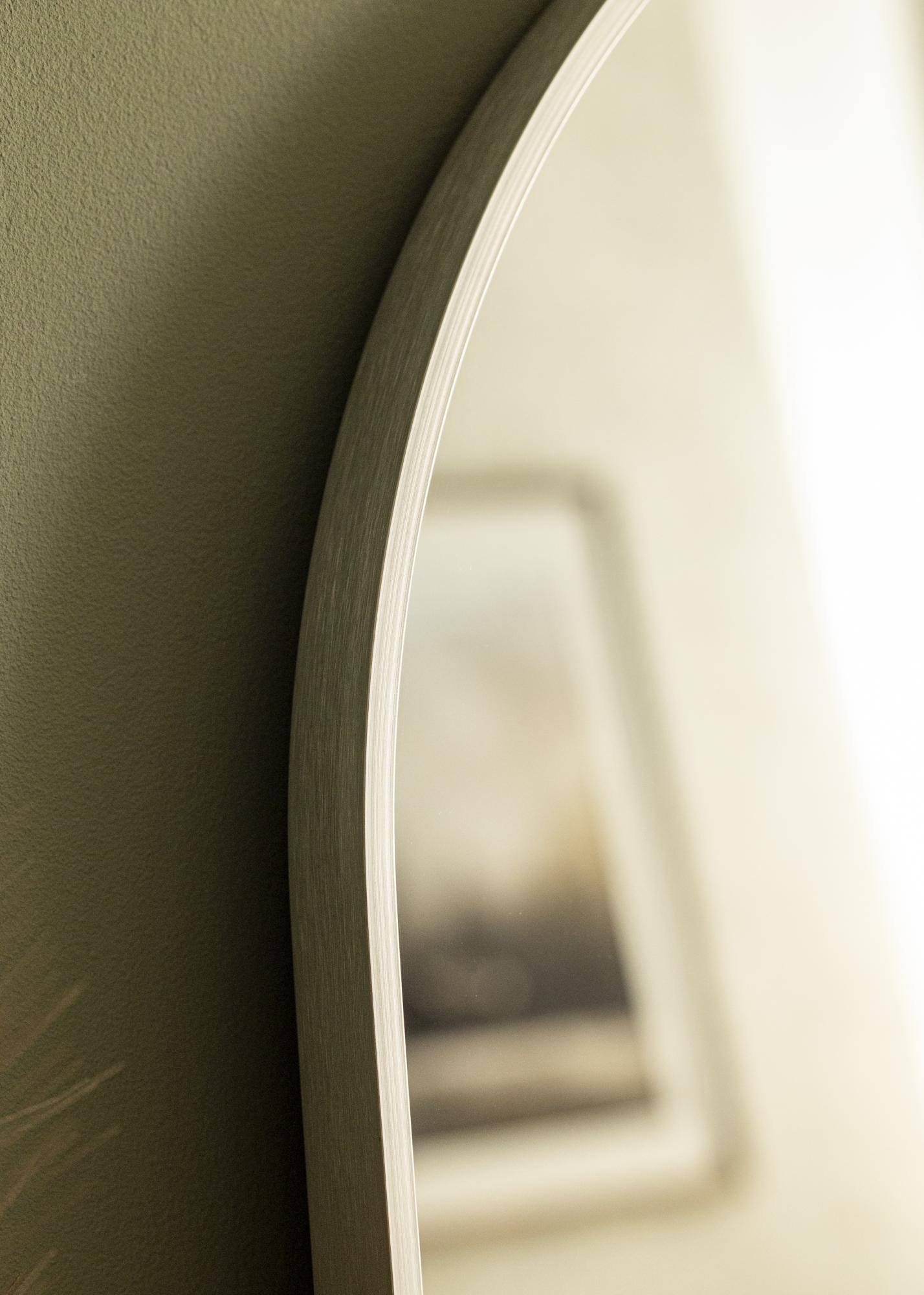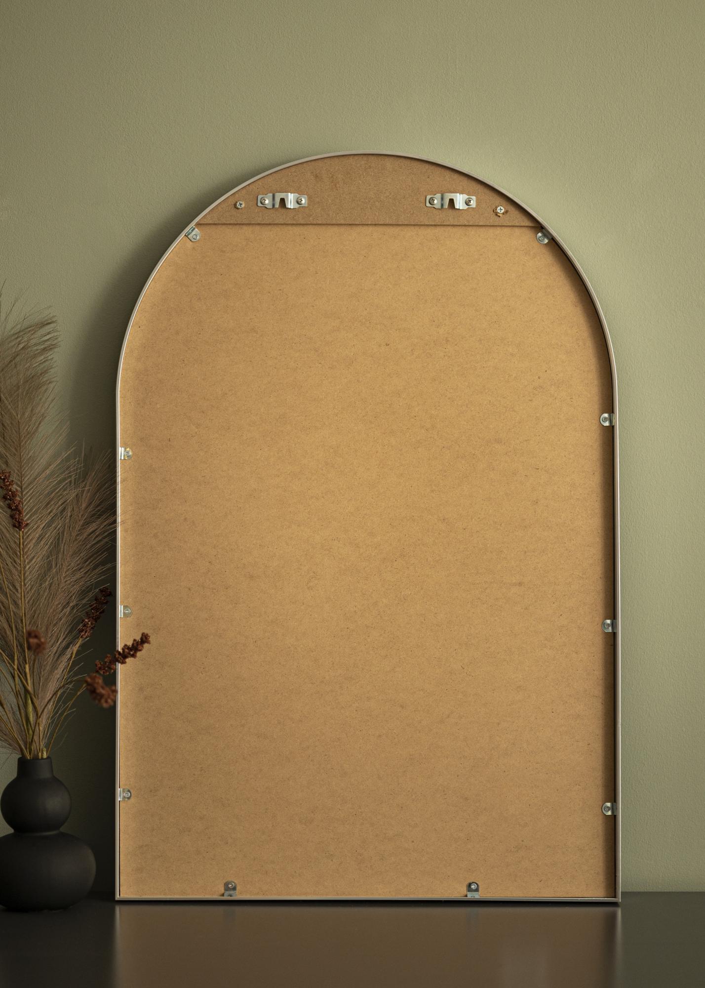 Este espelho de parede é tanto trendy como funcional - em outras palavras, perfeito para qualquer casa! O design em forma de arco é complementado por uma moldura de 28 mm de profundidade em um tom prateado, que confere ao espelho uma expressão moderna. A moldura é feita de metal.