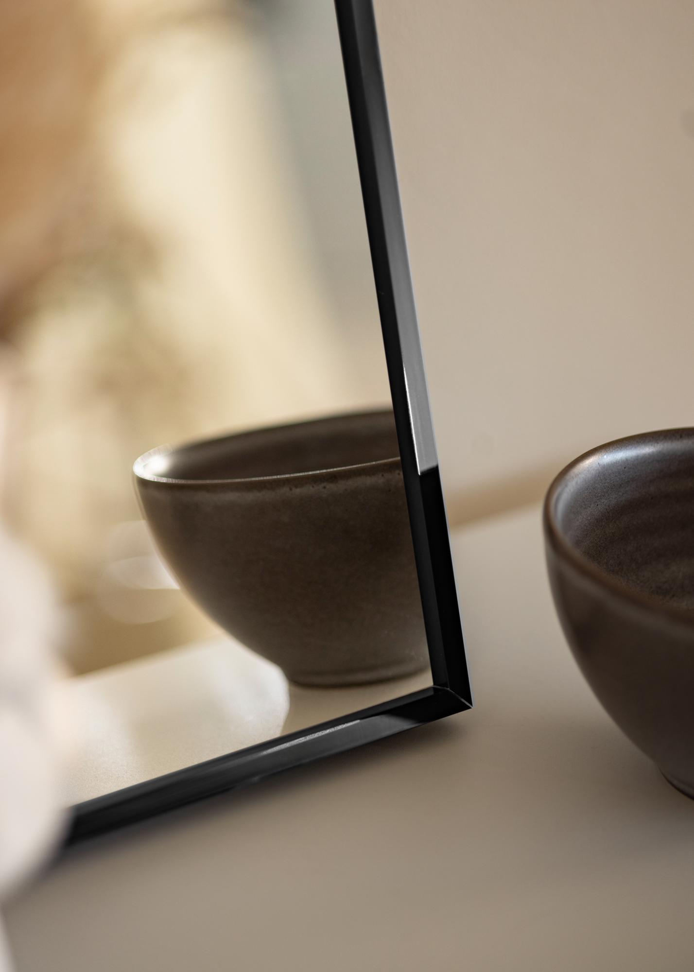Iniciar o seletor de molduras »Espelho premium elegante com uma moldura preta fina e brilhante que encaixa-se perfeitamente num interior moderno e elegante.