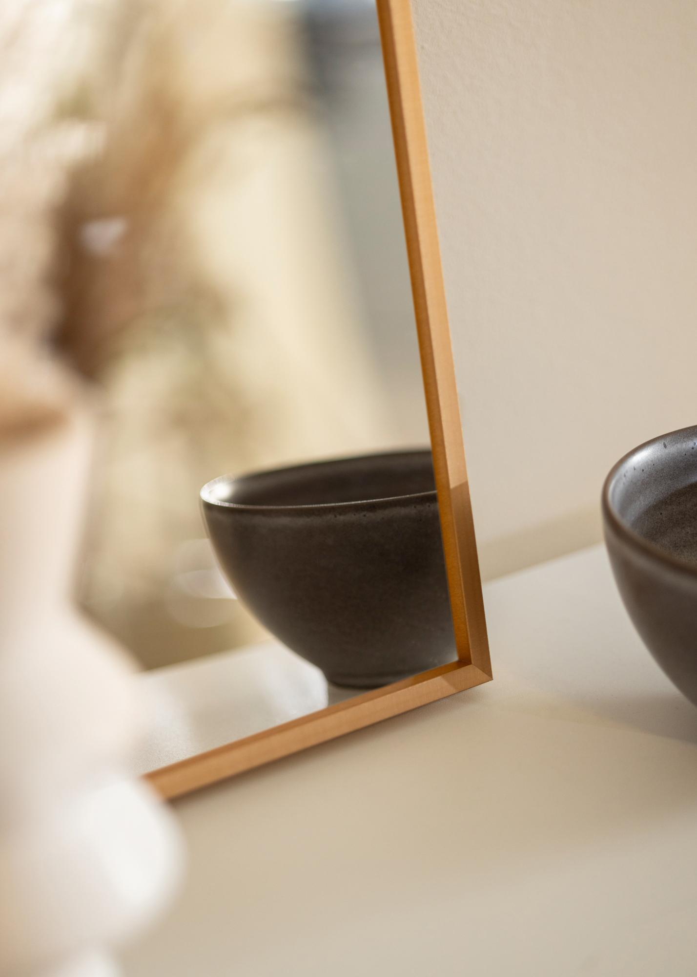 Espelho Nielsen Premium Alpha Escovado Âmbar é um espelho feito sob medida por nós para atender às suas necessidades. Com sua cor de âmbar metálico e perfil fino e elegante, torna-se um elemento de estilo em qualquer ambiente. A superfície escovada confere ao espelho um brilho suave e mudanças sutis de cor que capturam a luz de uma forma bonita.