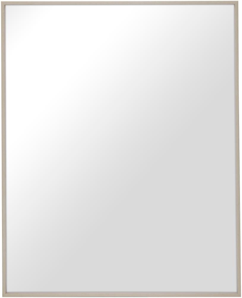 Este é um espelho elegante que produzimos manualmente na nossa oficina de molduras e pode escolher o tamanho que desejar. É feito de alumínio com folheado de madeira genuína e tem apenas 5,5 mm de largura. Uma moldura de madeira genuína não pode ser tão fina, o que torna este espelho de alumínio com folheado de madeira único - você obtém tanto a madeira quanto uma moldura fina em um só!