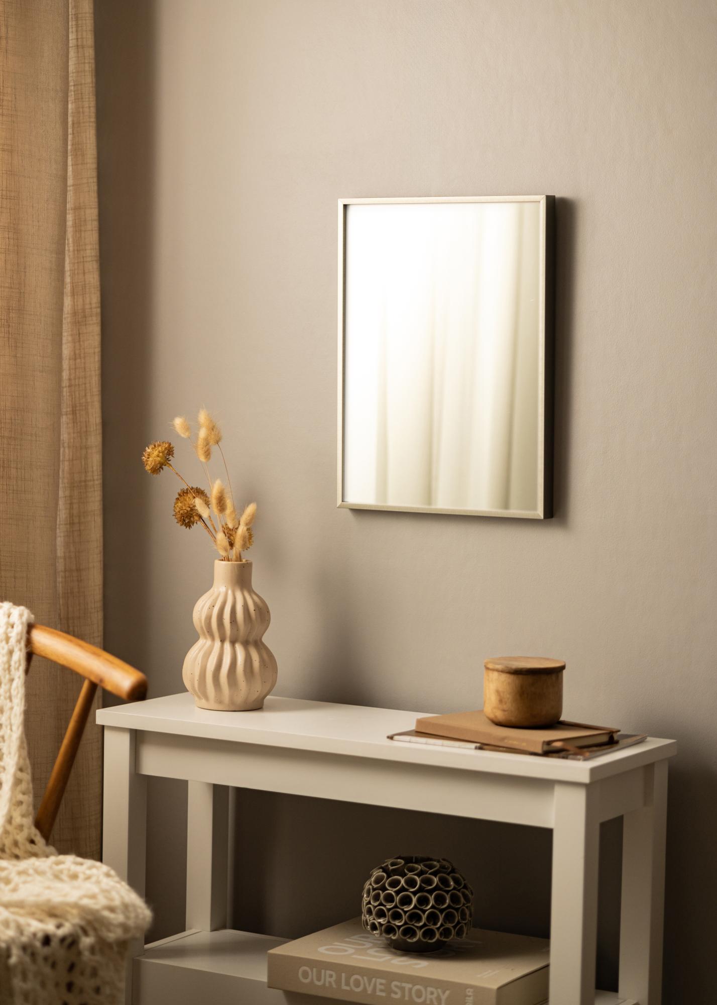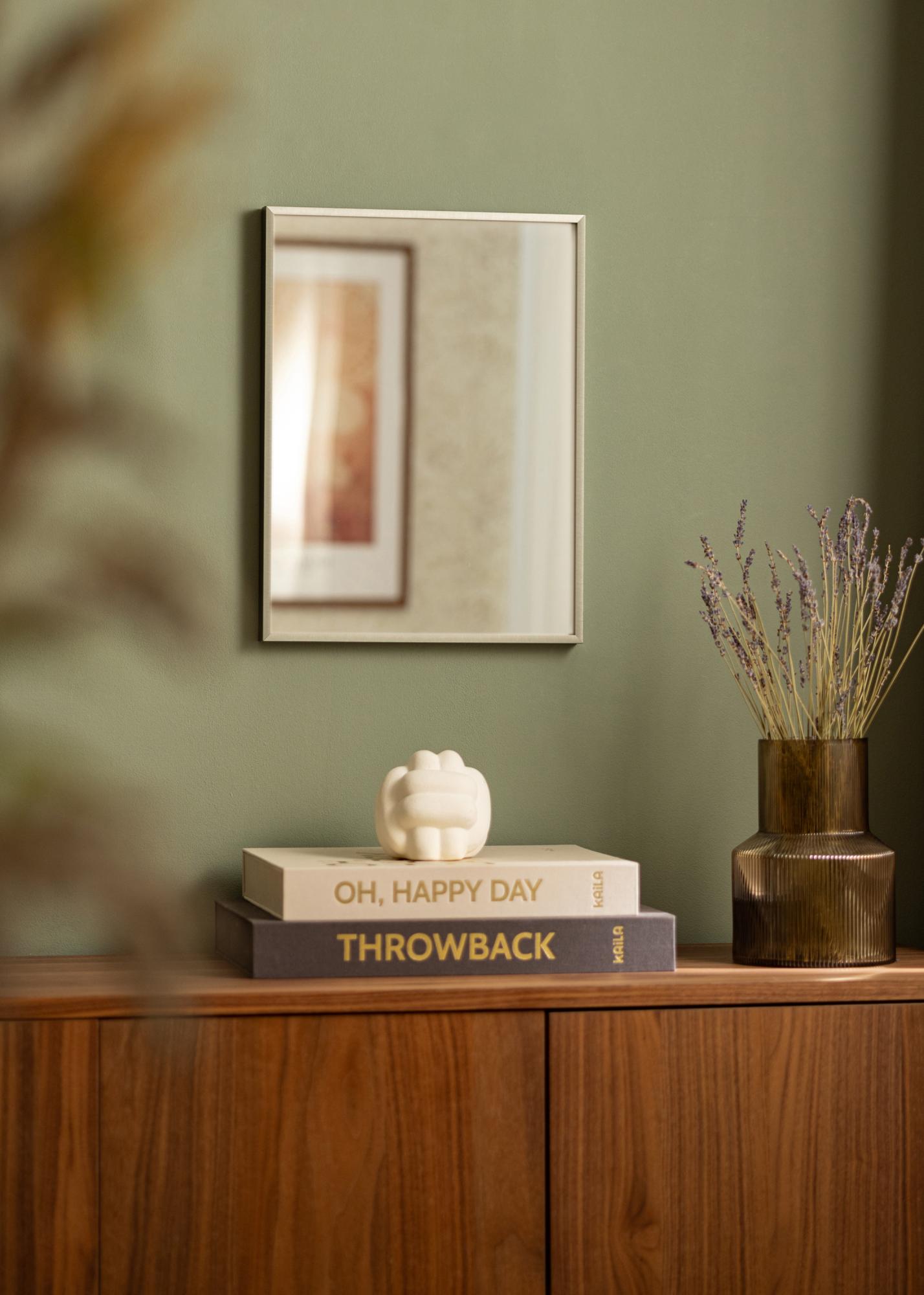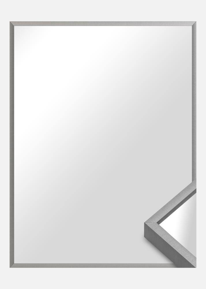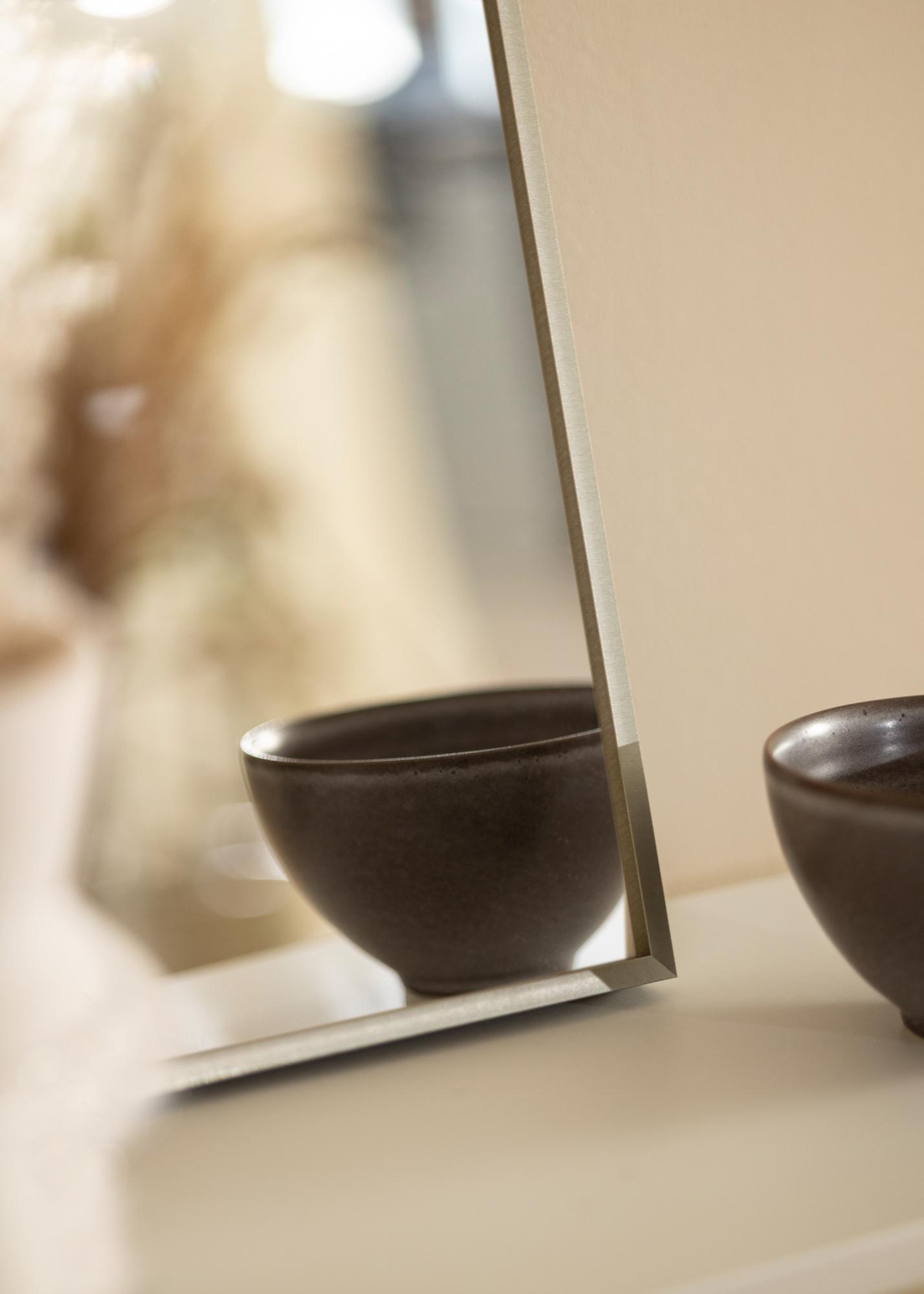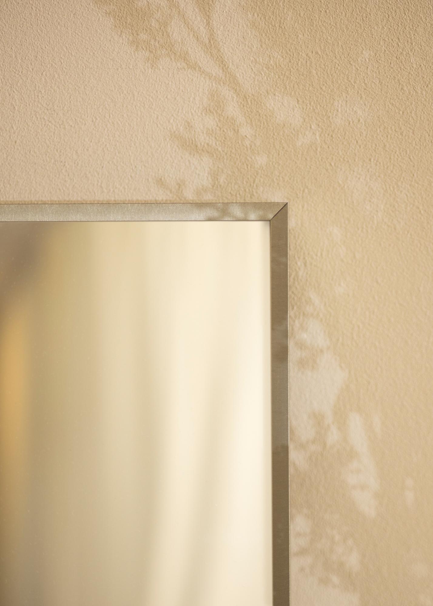 Este espelho tem uma bela cor prateada que oferece uma impressão atemporal e sofisticada. A moldura tem 7,8 mm de largura e é feita de alumínio, o que proporciona uma construção robusta e durável ao espelho, ao mesmo tempo em que mantém uma sensação leve e ágil. A profundidade de 25,9 mm faz com que o espelho fique firmemente contra a parede e ofereça uma aparência elegante.