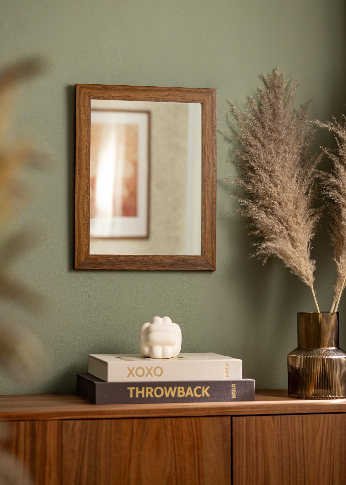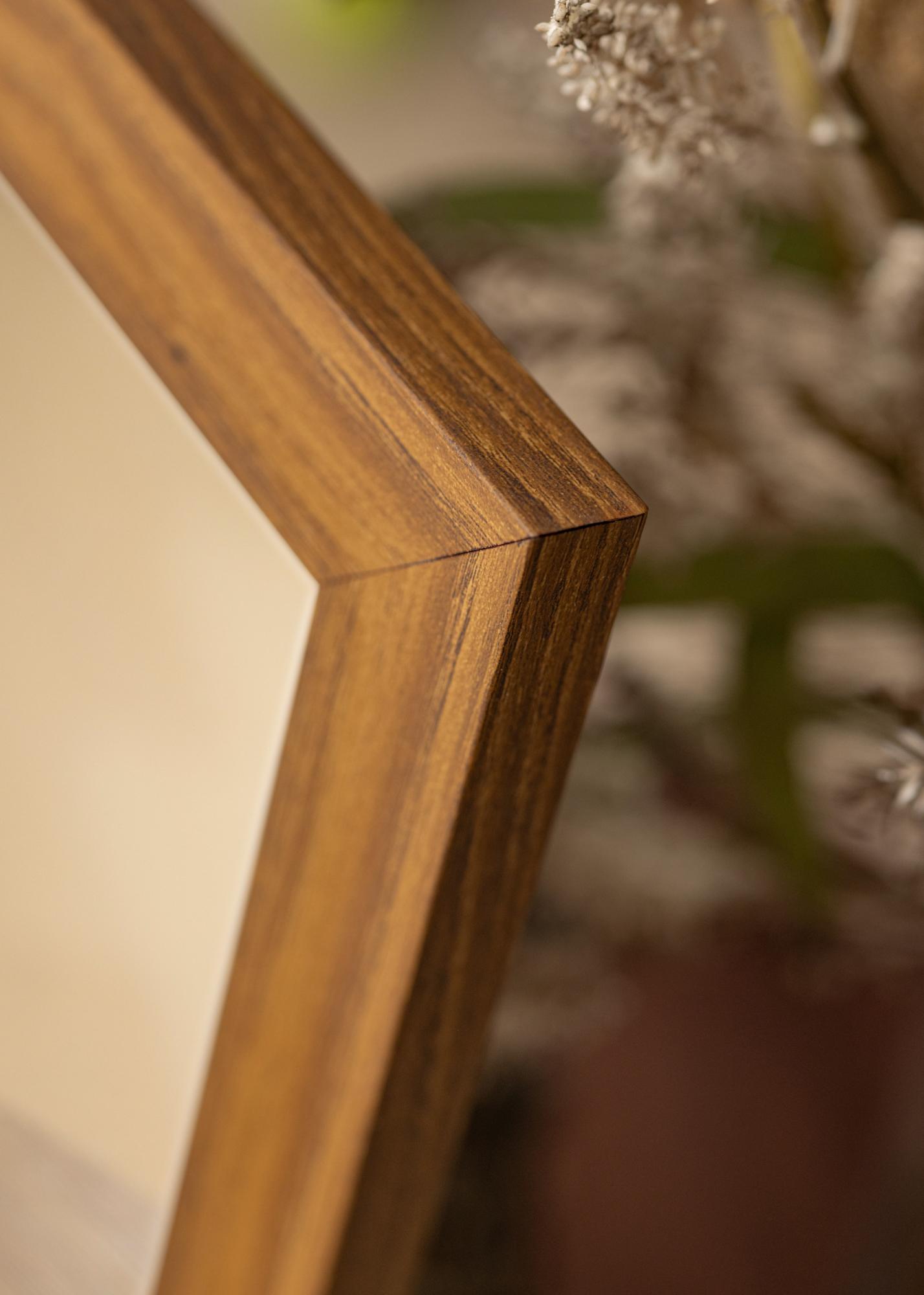 Moldura de madeira de pinho envernizada em tom castanho claro, com um perfil largo de 40 mm. Perfeito quando procura um espelho elegante com moldura de madeira e um perfil largo.