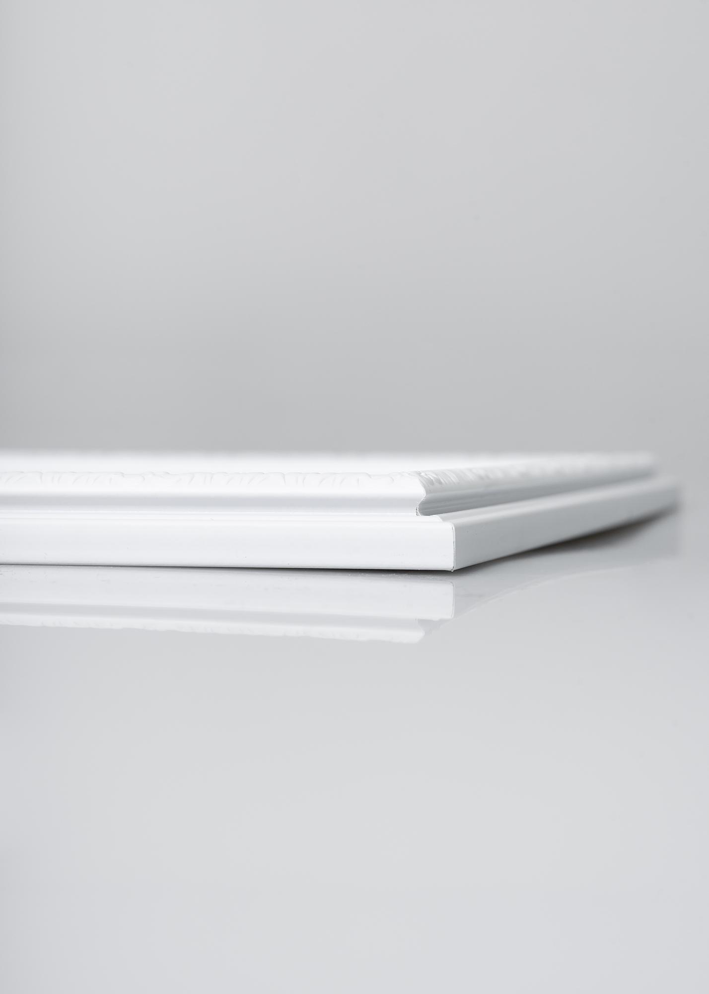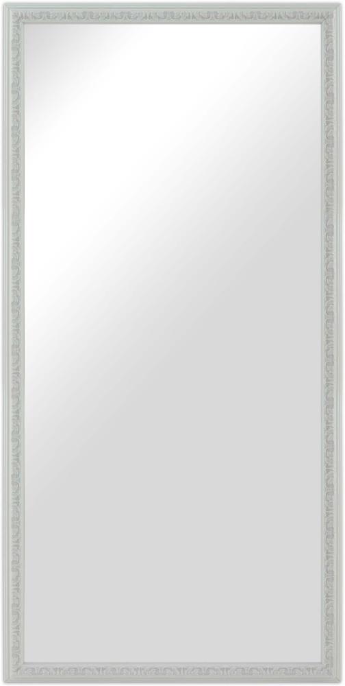 Este espelho de parede é um detalhe de decoração elegante que reflete lindamente a luz de todas as fontes de luz do ambiente. A moldura branca proporciona uma impressão clara e fresca, que é perfeitamente complementada pelo perfil decorativo da moldura e pelos belos padrões.