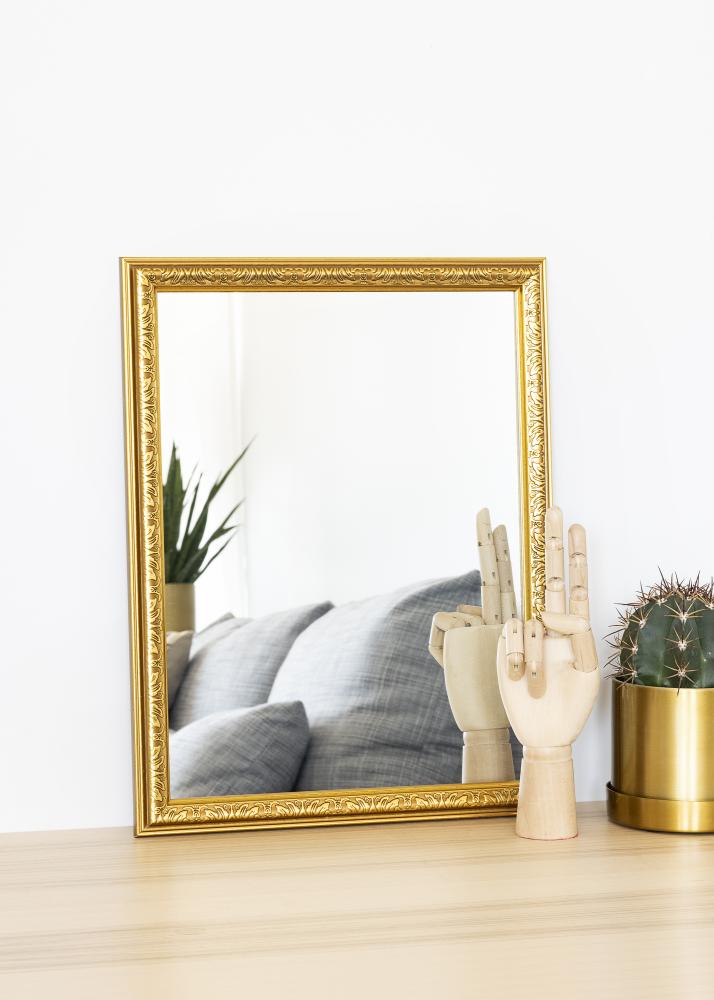 Iniciar o seletor de molduras »Nostalgia Dourada é uma série de espelhos de parede. A moldura é ricamente decorada com símbolos irregulares que dão uma impressão um pouco misteriosa.