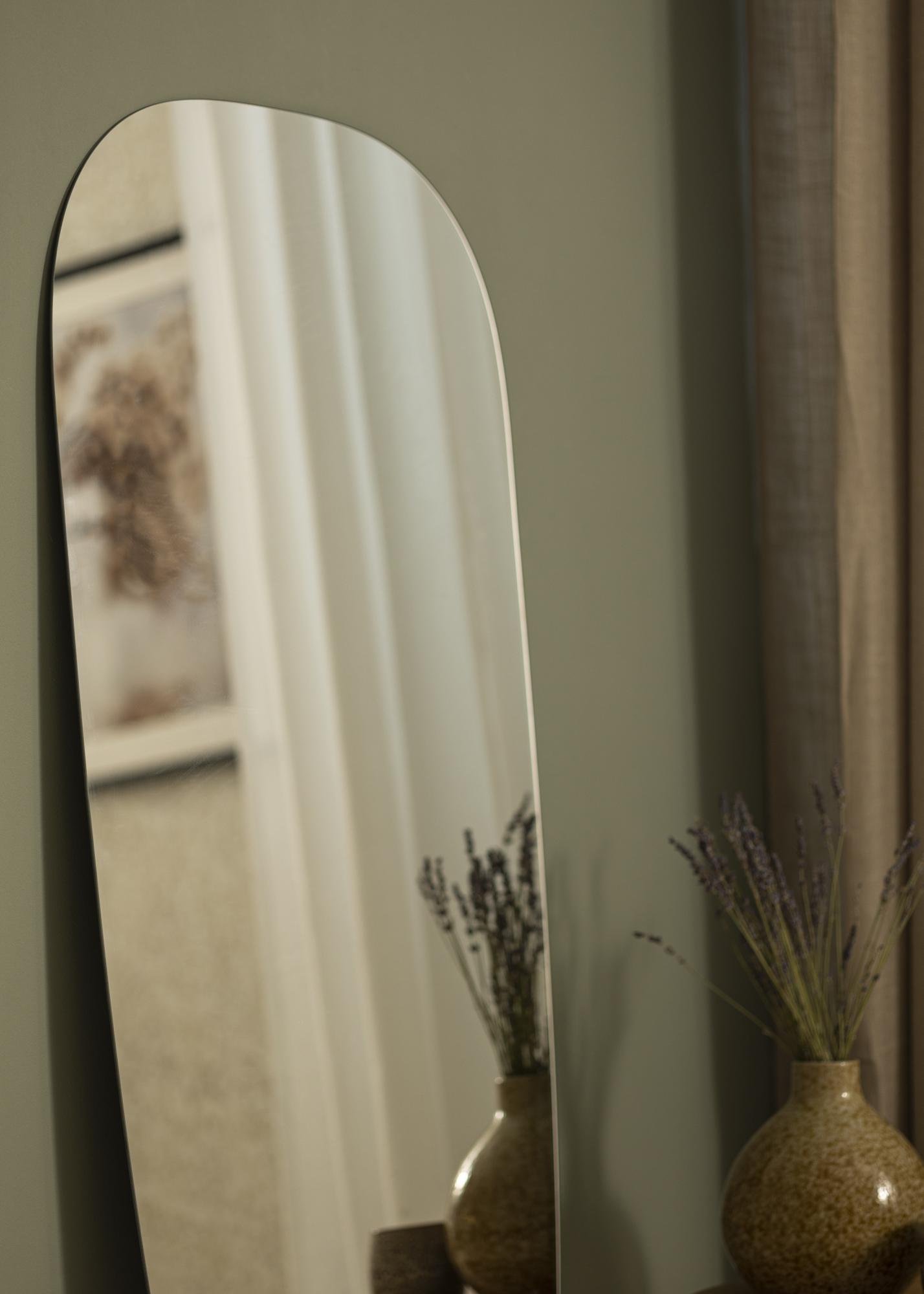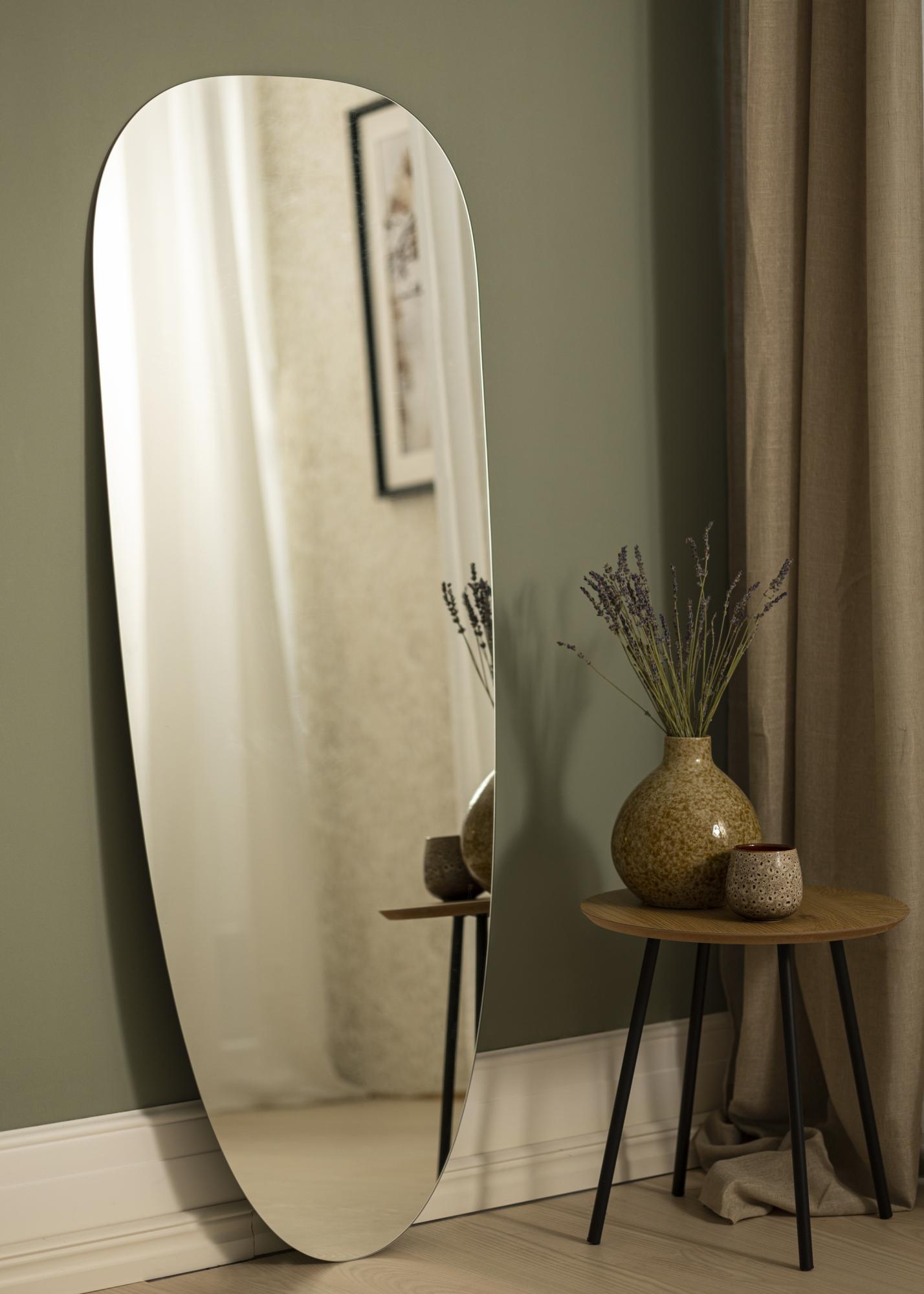 Descubra o charme único do nosso espelho que irradia elegância e modernidade. Com suas generosas dimensões de 55x140 cm, este espelho oferece uma reflexão de corpo inteiro perfeita para verificar sua aparência ou iluminar e dar uma sensação de maior espaço para sua casa. Seu design distinto, que lembra uma gota d'água em pé, adiciona um toque artístico e funciona como um detalhe interessante em sua decoração.