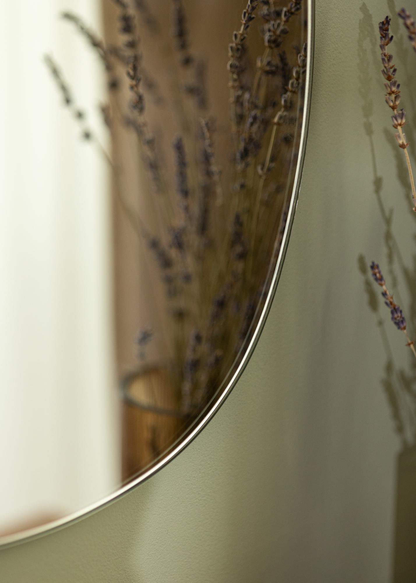 Este espelho não é apenas um objeto prático, mas também um elegante detalhe decorativo. Sua forma distinta de 50x70 cm torna-o um elemento marcante na parede. Ele foi projetado para ser pendurado verticalmente, tornando-o perfeito para espaços estreitos ou como parte de uma composição maior na parede.
