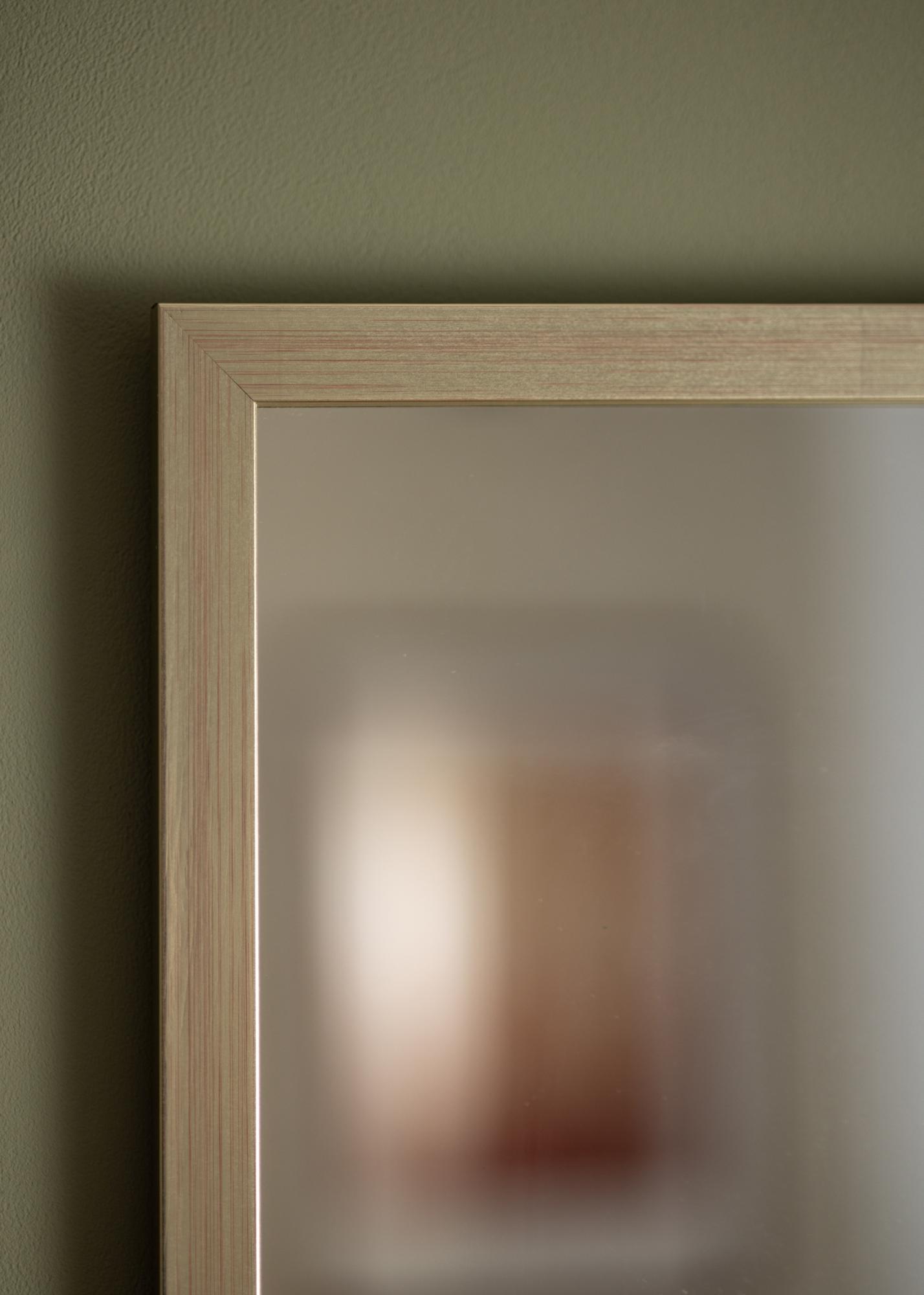 Este espelho é feito de madeira de ayous, pintado em um tom prateado elegante. A moldura tem 22 mm de largura e possui um perfil reto, criando uma aparência um pouco mais simplificada. Coloque o espelho no corredor, quarto ou sala de estar e deixe-o refletir a luz das lâmpadas e janelas de maneira bonita.
