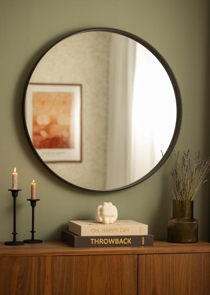 Descubra a elegante simplicidade do nosso espelho redondo, um detalhe de decoração atemporal que se encaixa perfeitamente em qualquer casa. Este elegante espelho redondo se destaca com sua moldura preta, que traz uma sensação fresca e moderna para o ambiente. Seu design minimalista faz com que ele se adapte a diferentes estilos de decoração, desde o escandinavo até o industrial.