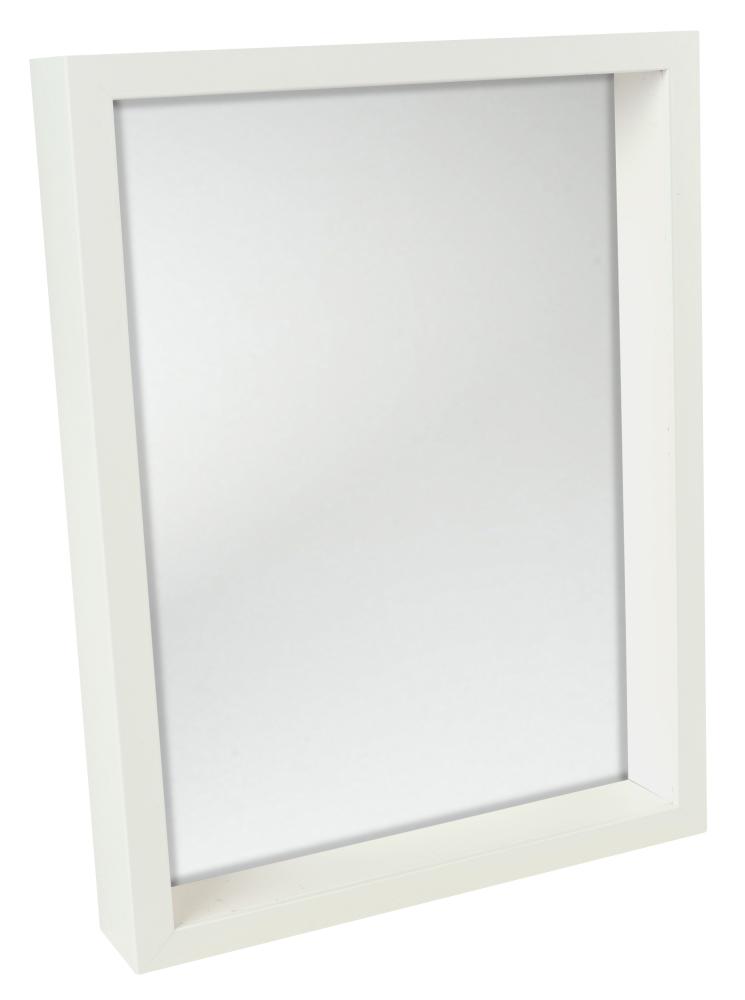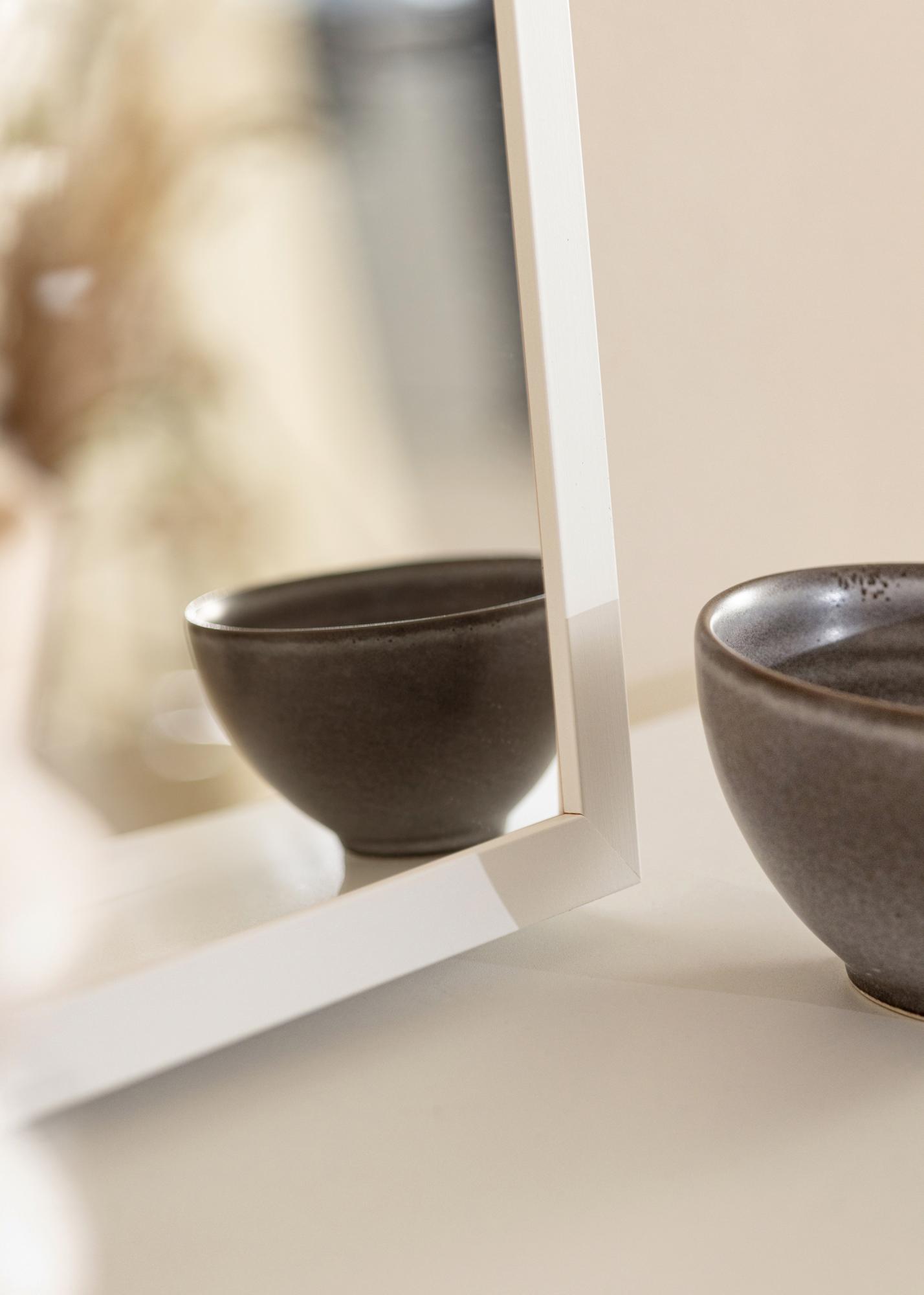 Fururam fabricado na Finlândia, pintado de branco diretamente na madeira para uma sensação de madeira genuína. "Sala Vit" tem uma profundidade de 60 mm, o que faz com que o espelho se projete um pouco para fora da parede, criando um efeito 3D impressionante.