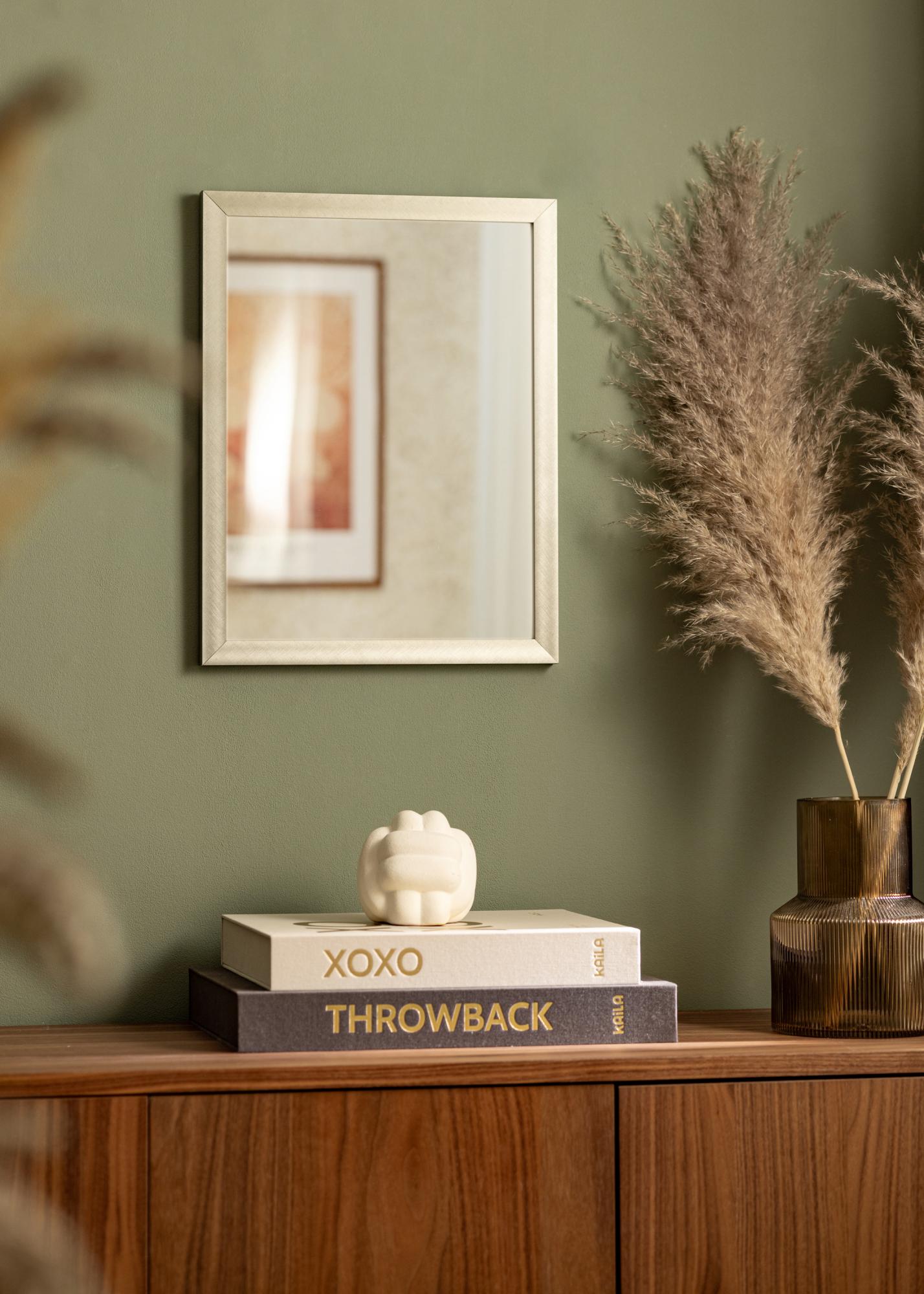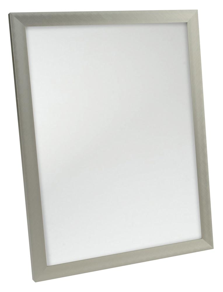 Bonito espelho moderno com moldura em alumínio escovado que se encaixa bem em qualquer casa com decoração elegante. O metal cinzento dá uma impressão fresca e faz com que o espelho ocupe um lugar discreto na parede, sem competir com outros acessórios de decoração. Apesar do seu design elegante, ele é robusto e estável. Combine o espelho com outros objetos de decoração em metal e fotografias ou impressões em molduras semelhantes para criar uma sensação de harmonia no ambiente.