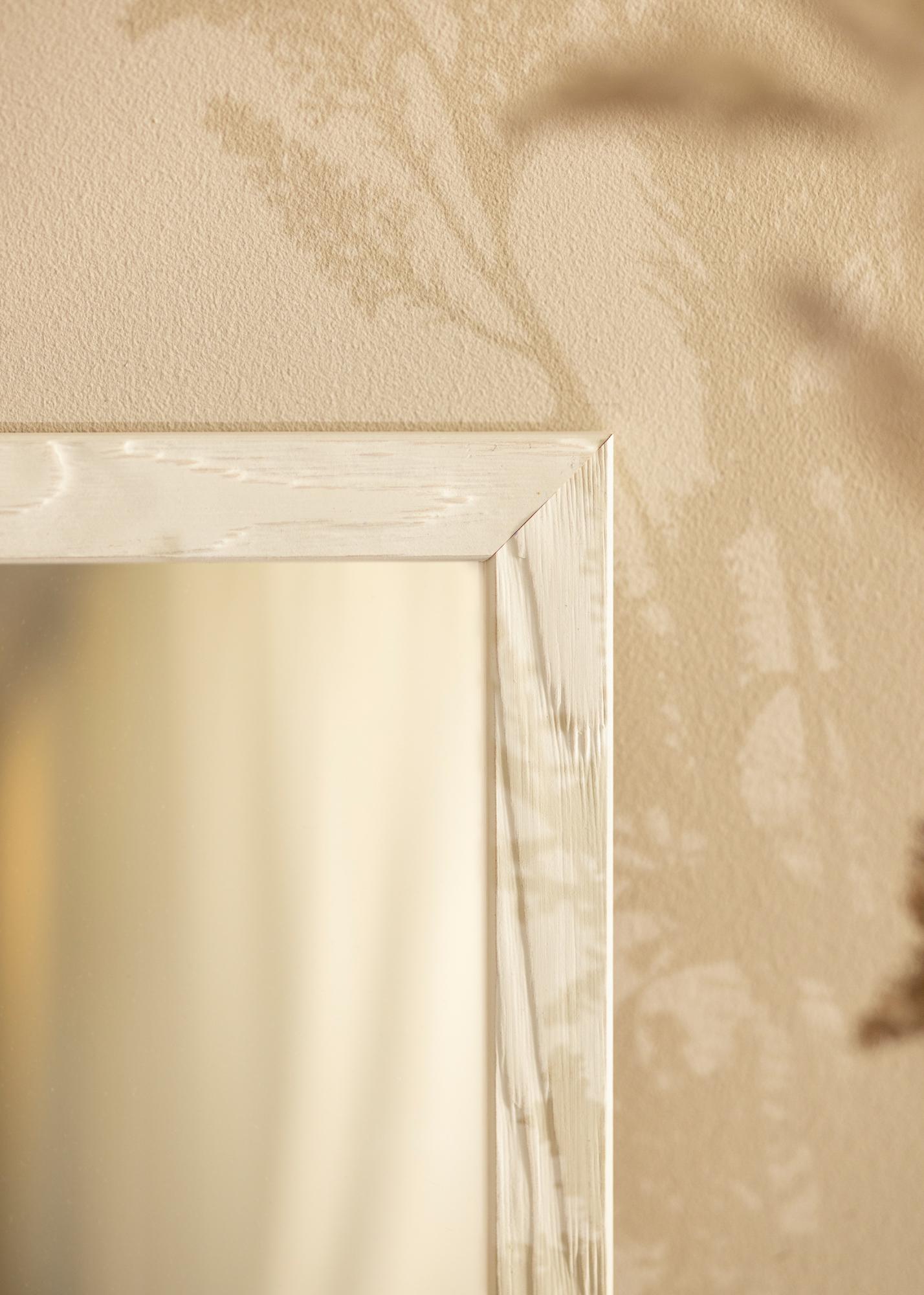 Dê um toque especial à parede da casa de banho, hall de entrada ou sala de estar ao colocar este elegante espelho na parede. O espelho possui um design simples e elegante, com uma moldura branca laqueada. Como é feito de acordo com as suas medidas, pode ter certeza de que ele encaixará exatamente onde deseja. O design combina perfeitamente tanto num ambiente moderno quanto num ambiente rústico ou romântico!