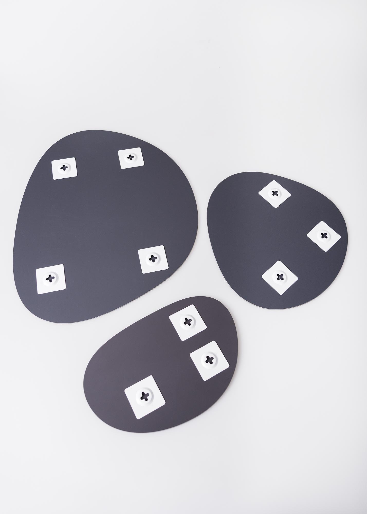 Os espelhos vêm com suportes de parede para que possam ser facilmente pendurados.