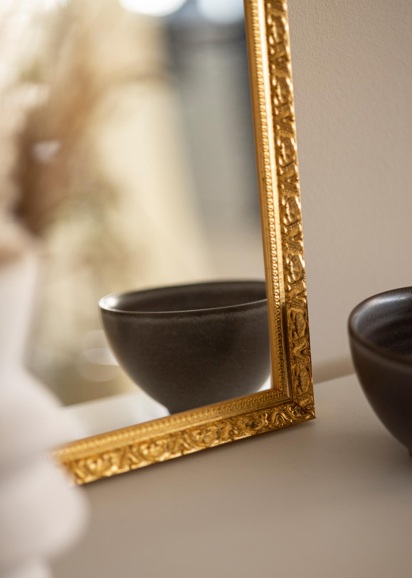 Espelho dourado retro inspirado, de alta qualidade, com um design exclusivo fabricado na Itália.