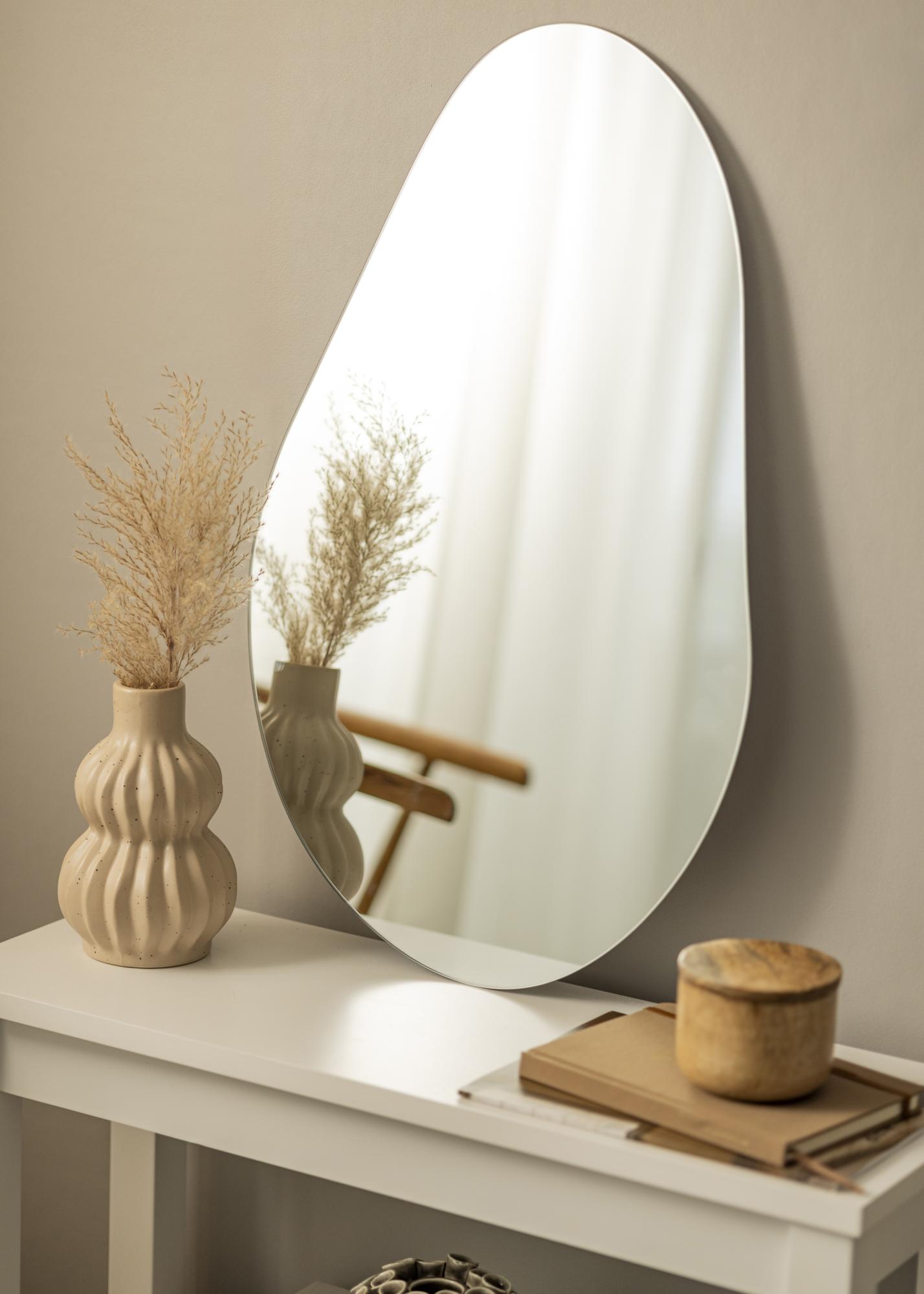 O Smooth Cloud é um espelho de parede com uma forma oval e lados levemente côncavos. Isso cria uma forma suave que é muito elegante. A impressão estilosa é reforçada pelo vidro fino de 4 mm do espelho e pelo design sem moldura. Este espelho pesa 2 kg e mede 40x65 cm.
