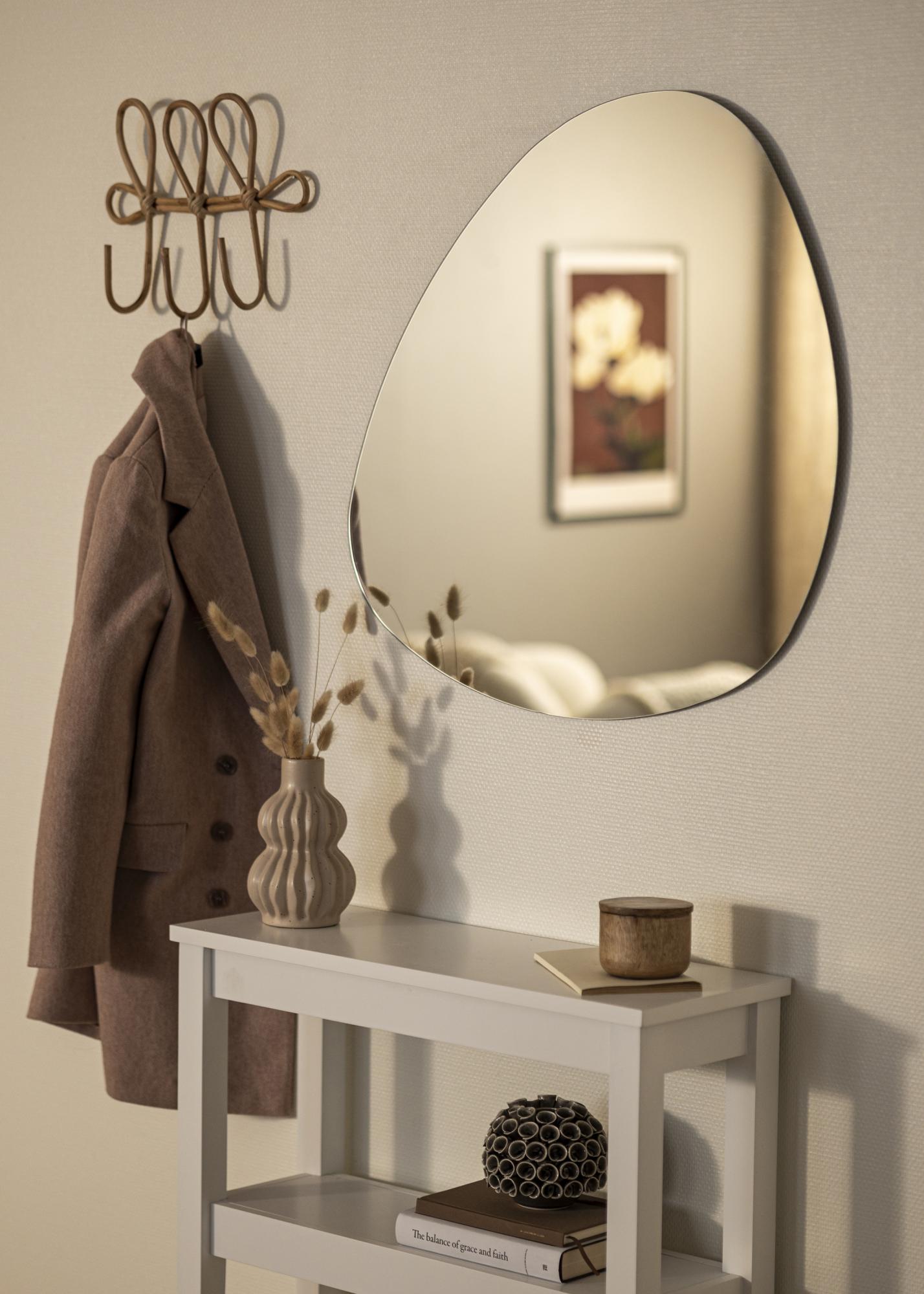 Descubra um detalhe único para a sua casa com nosso espelho assimétrico, um design que quebra o tradicional e traz uma sensação de fluidez e suavidade ao ambiente. Com suas linhas curvas, o espelho transmite uma sensação harmoniosa e equilibrada, perfeito para criar um interessante efeito visual na parede. Com suas dimensões de 70x70 cm, é um acento ideal tanto para espaços pequenos quanto grandes.