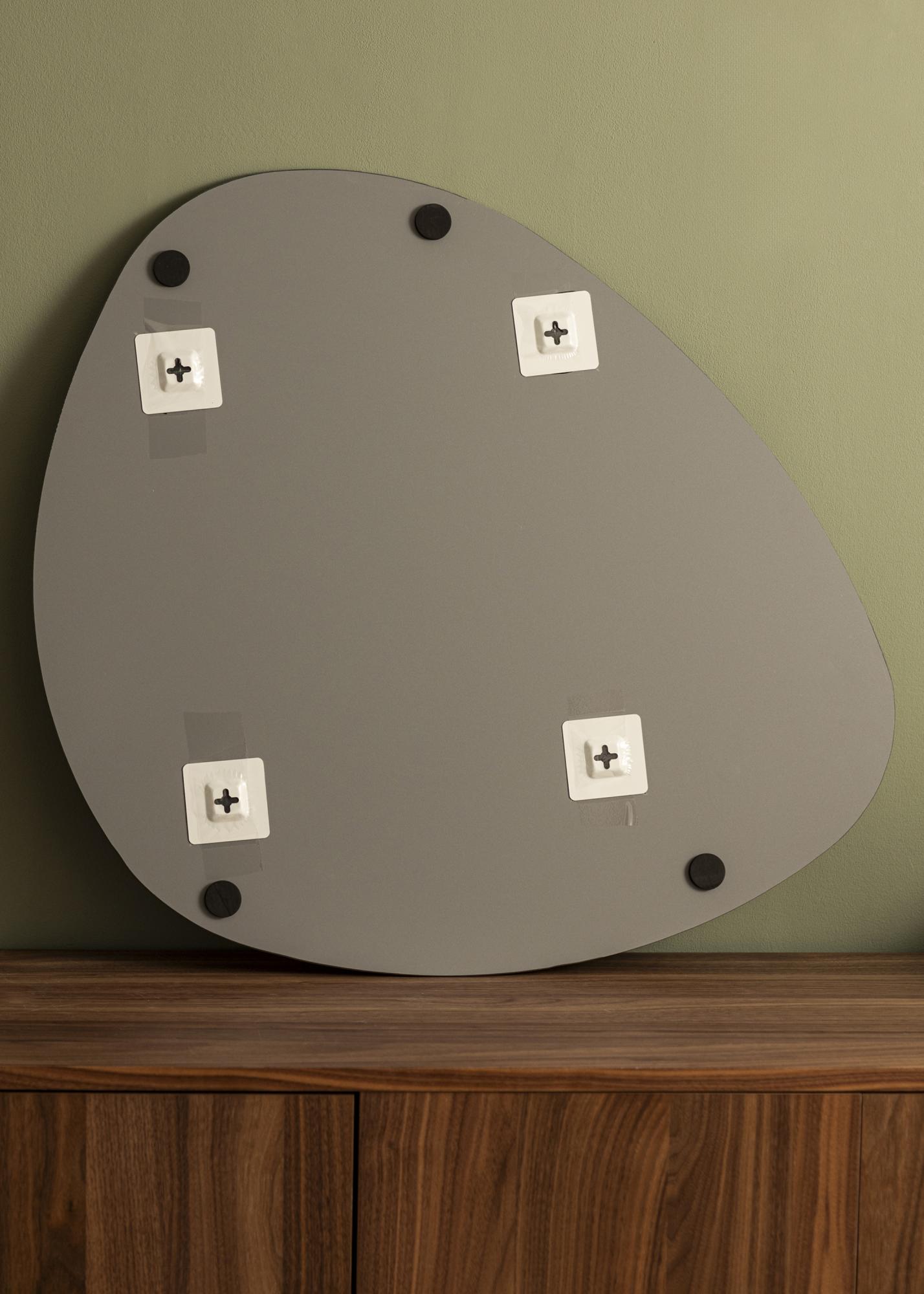 O design do espelho não apenas é esteticamente agradável, mas também é funcional. A forma assimétrica permite que você escolha qual lado ficará para cima ou para baixo, dando a você a liberdade de personalizar seu espaço. Não importa onde você o coloque, este espelho será um ponto de conversa e um elemento expressivo em sua casa.