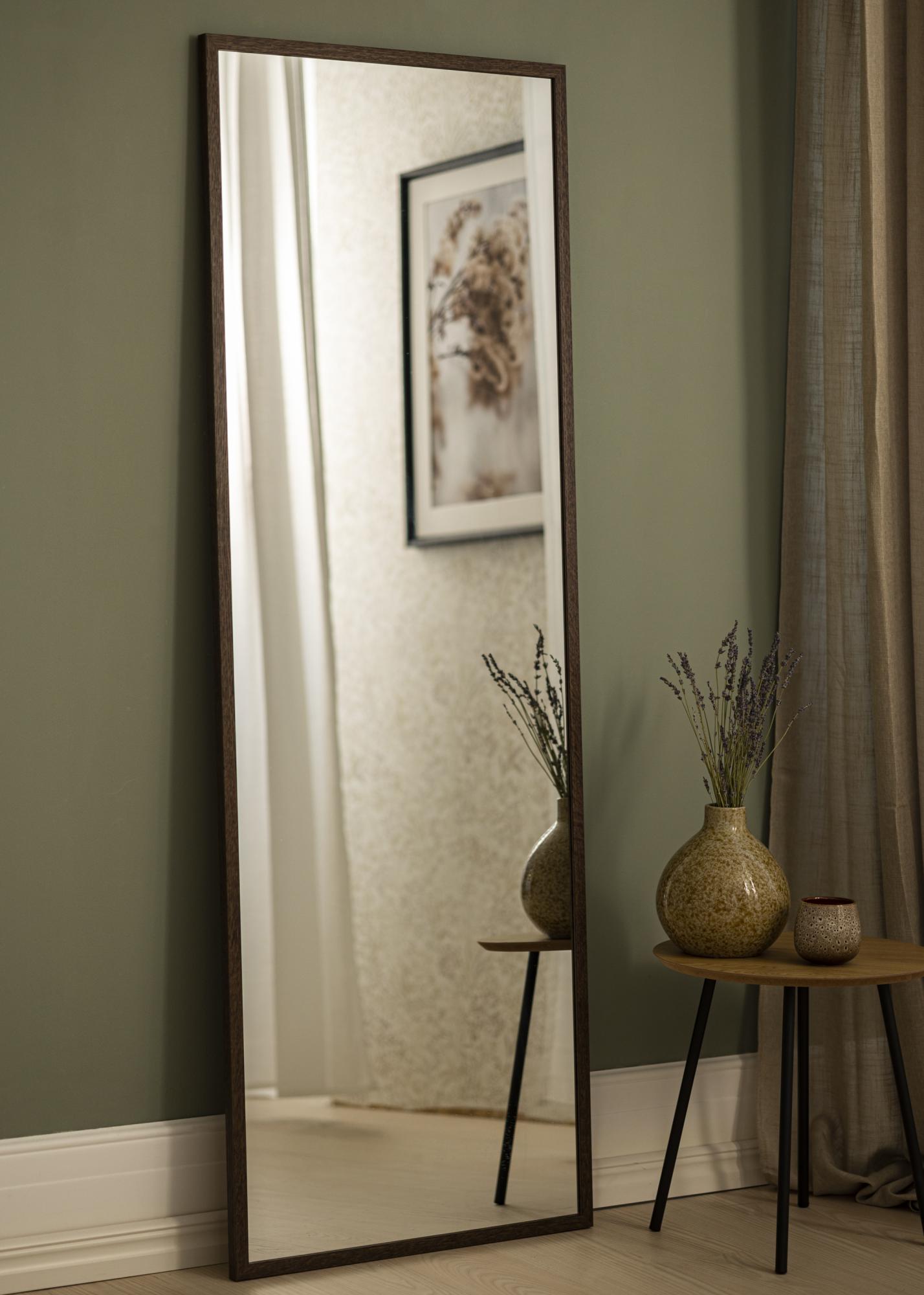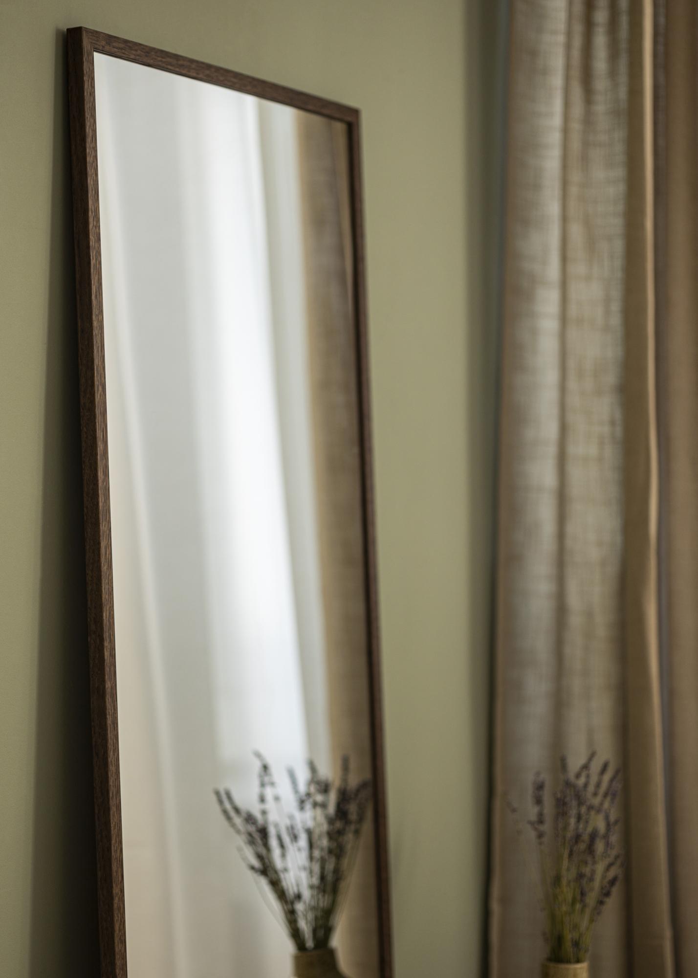 A moldura do espelho é feita de madeira de carvalho genuína e possui um acabamento escuro que imediatamente atrai a atenção. A espessura da moldura confere uma sensação robusta e contribui para a construção sólida do espelho. Este espelho não é apenas um item prático, mas também uma obra de arte que complementa diferentes estilos de decoração, do tradicional ao moderno.