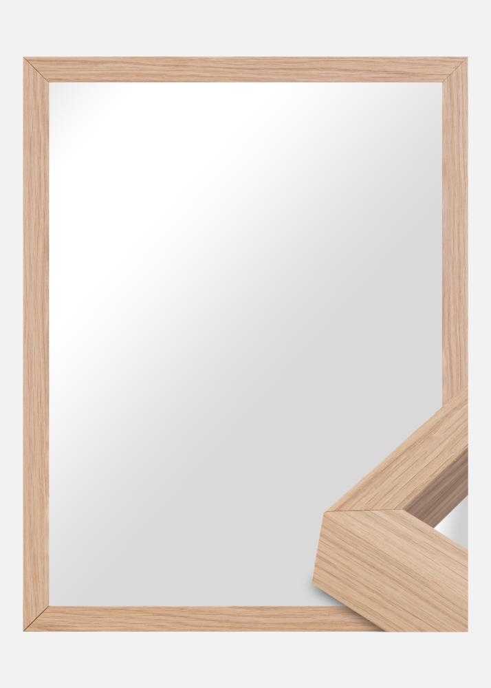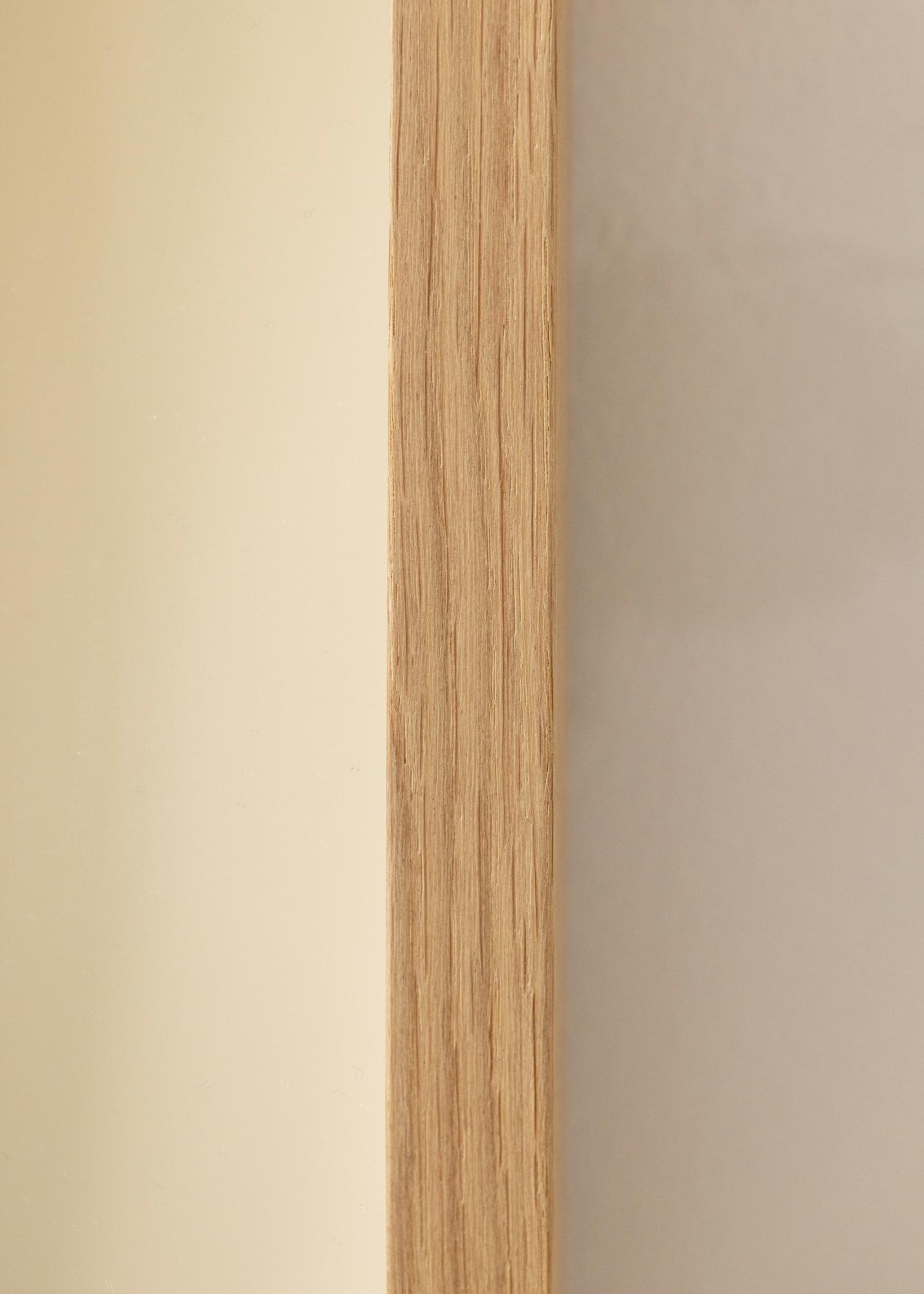 A moldura do Espelho Thor Carvalho tem 20 mm de largura, o que proporciona ao espelho uma moldura sutil, mas ainda assim distinta. Isso faz com que o espelho se integre à maioria dos estilos de decoração ao mesmo tempo em que adiciona um toque de elegância. A profundidade do espelho é de 40 mm, conferindo-lhe uma sensação robusta e sólida sem ser muito pesado ou dominante.