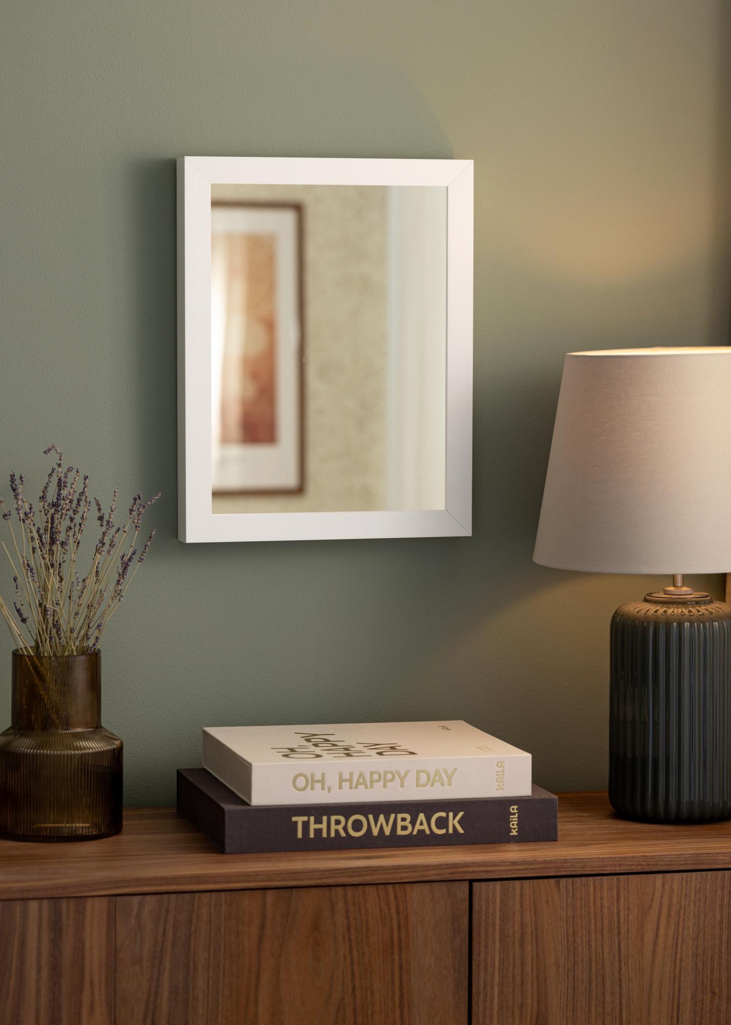 Este espelho tem uma elegante cor branca que se integra na maioria dos estilos de decoração. A moldura com 30 mm de largura dá ao espelho uma moldura elegante e discreta, enquanto a medida de 50 mm de profundidade cria uma impressão robusta e sólida. Fabricado em pinho, o espelho oferece tanto durabilidade quanto uma sensação natural que complementa o seu design moderno.