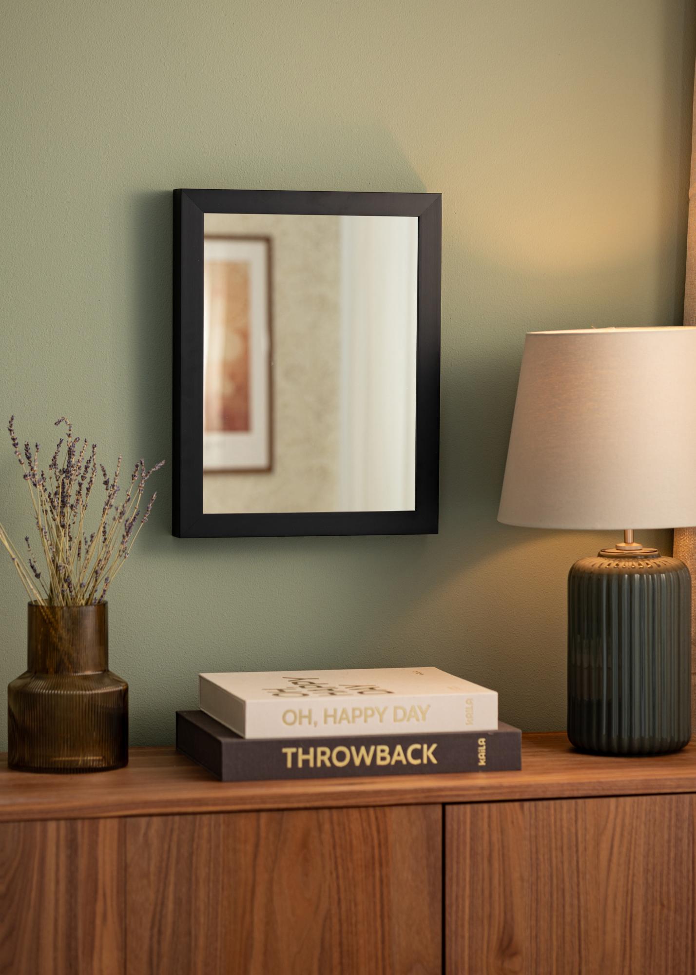 Este espelho tem uma cor preta elegante que dá uma impressão sofisticada e estilosa em qualquer cômodo onde seja colocado. A moldura de 30 mm de largura emoldura o espelho de maneira elegante e contribui para sua aparência moderna. Com uma profundidade de 50 mm, o espelho ganha uma sensação robusta ao mesmo tempo que mantém sua elegância.