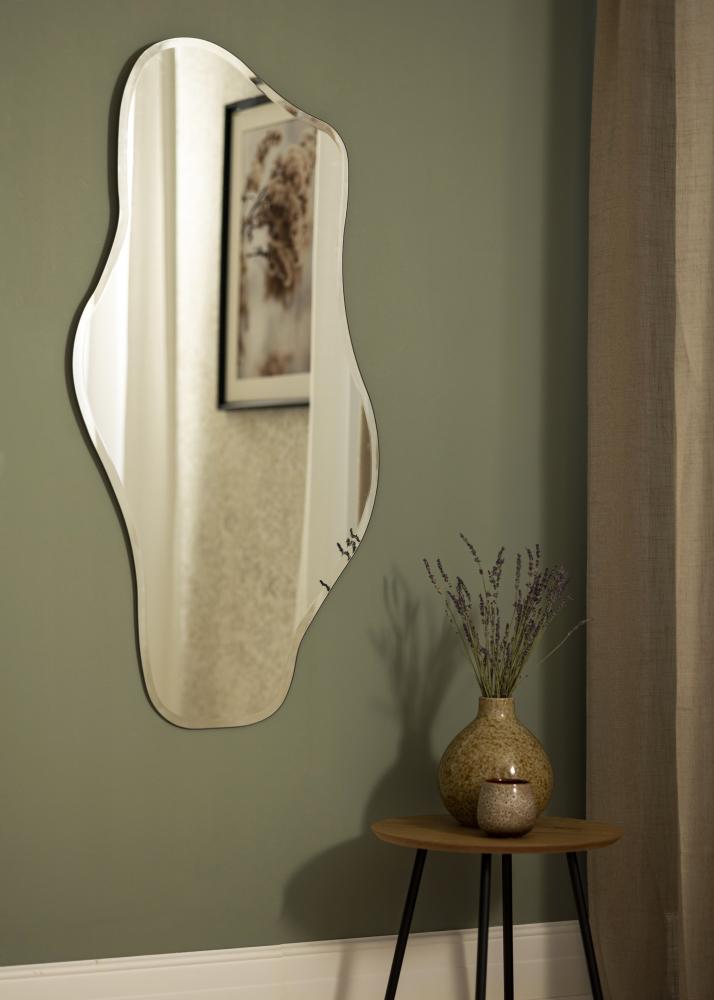 Descubra um espelho que combina funcionalidade com uma estética única - um espelho que não apenas reflete sua imagem, mas também seu senso de estilo. Com medidas de 55x110 cm, este espelho é um detalhe prático e elegante para a decoração da sua casa. Seu design é elegante e fluido, com uma forma orgânica distinta que é realçada pelo sofisticado acabamento em chanfro, proporcionando um toque especial a qualquer ambiente.