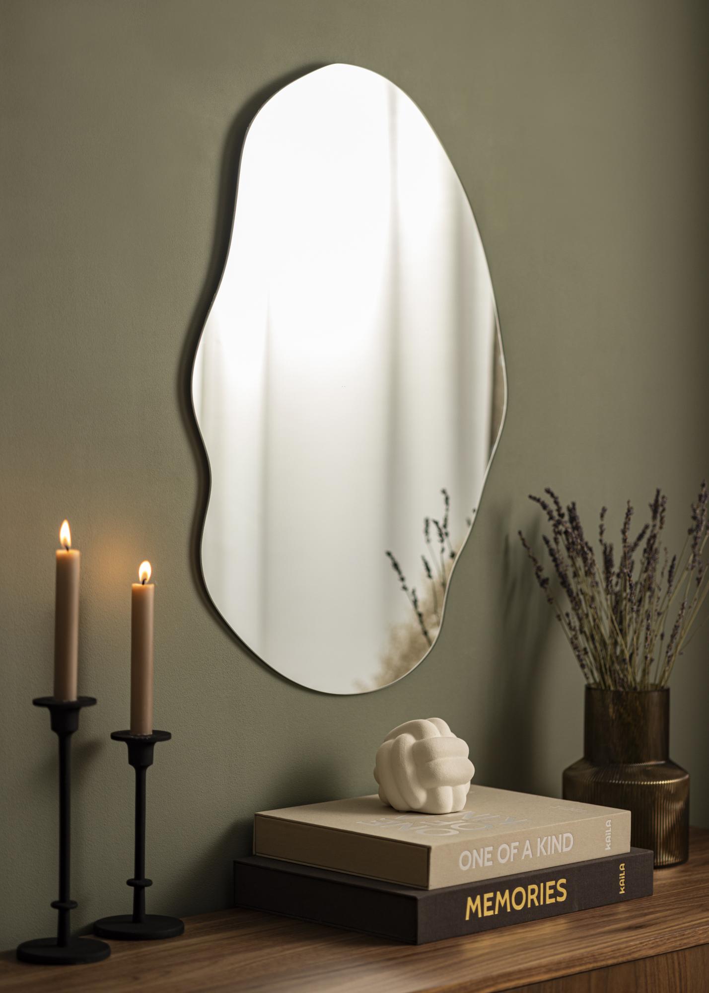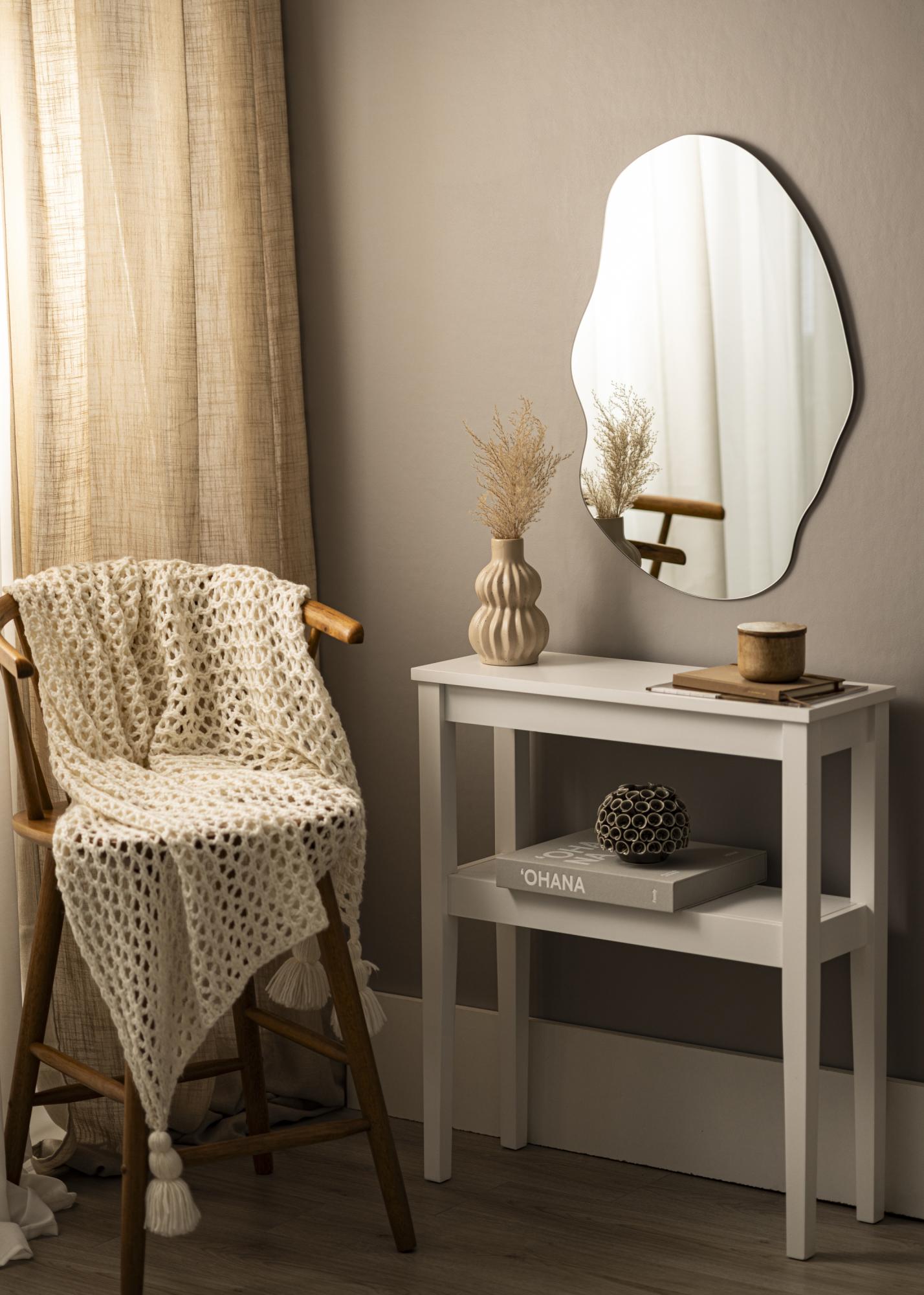 Você tem muitas formas clássicas na sua decoração, como mesas quadradas ou tapetes redondos? Então, um espelho com uma forma diferente é uma ótima adição para criar mais dinamismo no ambiente. Wide Cloud é um espelho de parede de 50x70 cm com um design inspirado em nuvens. A forma lindamente ondulada é muito elegante e o vidro fino do espelho realça ainda mais a sensação de estilo.