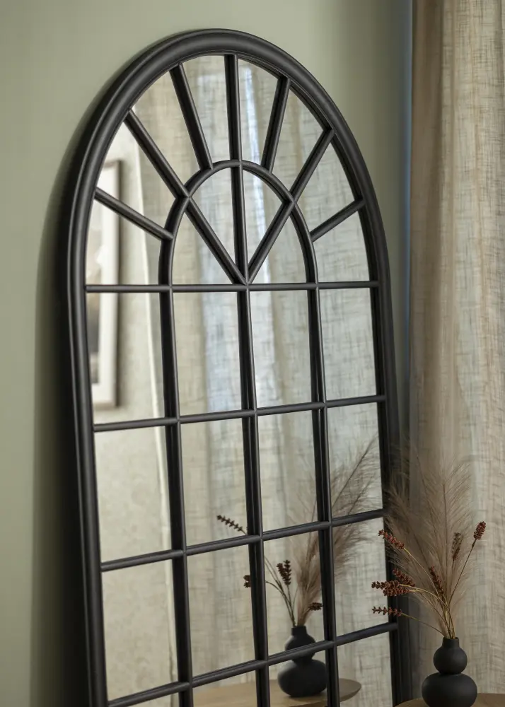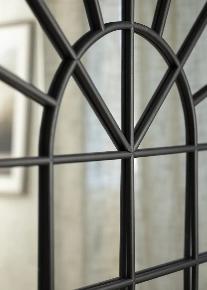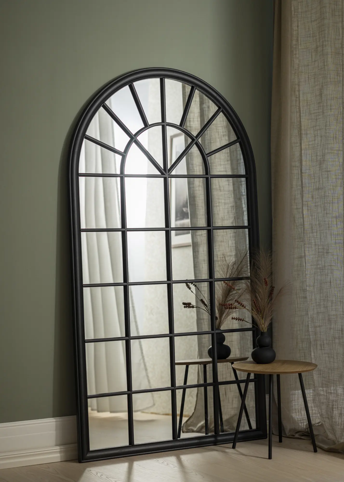 Descubra a presença majestosa do nosso espelho único, um verdadeiro atrativo para cada cômodo. Com suas generosas dimensões de 103x180 cm, este espelho não apenas oferece uma função prática, mas também se torna parte da sua decoração. Sua impressionante forma de arco semi-circular na parte superior é complementada por uma cativante grade semelhante a uma janela, que confere uma estética industrial distintiva ao espelho.