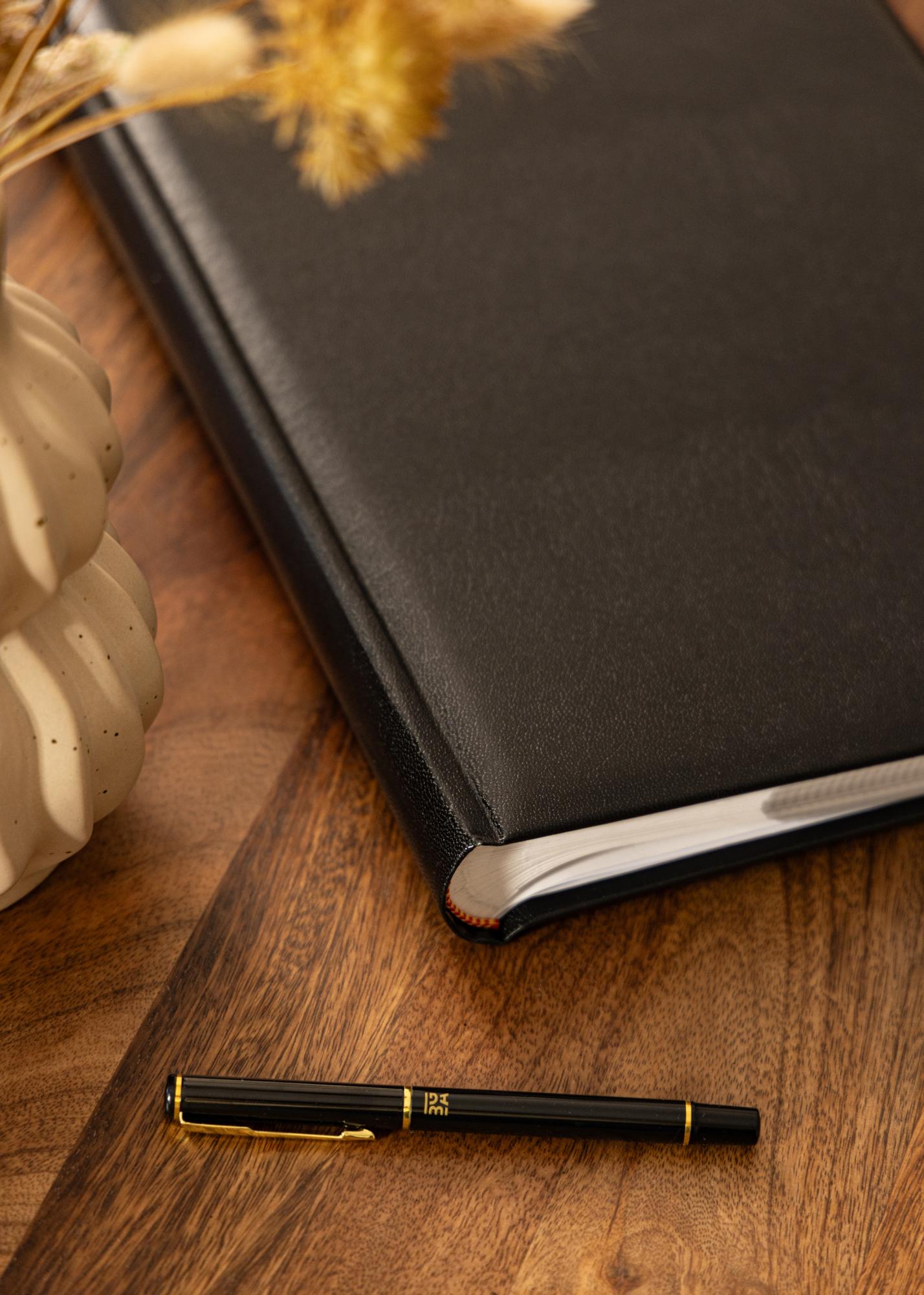 Álbum de fotos elegante com capas pretas de couro sintético, com espaço para 300 fotos de tamanhos até 11x15 cm. O Estancia Svart é encadernado em livro para maior durabilidade e também possui páginas de álbum sem ácido, o que mantém a qualidade original das suas fotos. Para cada foto, há bastante espaço para anotações pessoais, criando uma sensação personalizada.