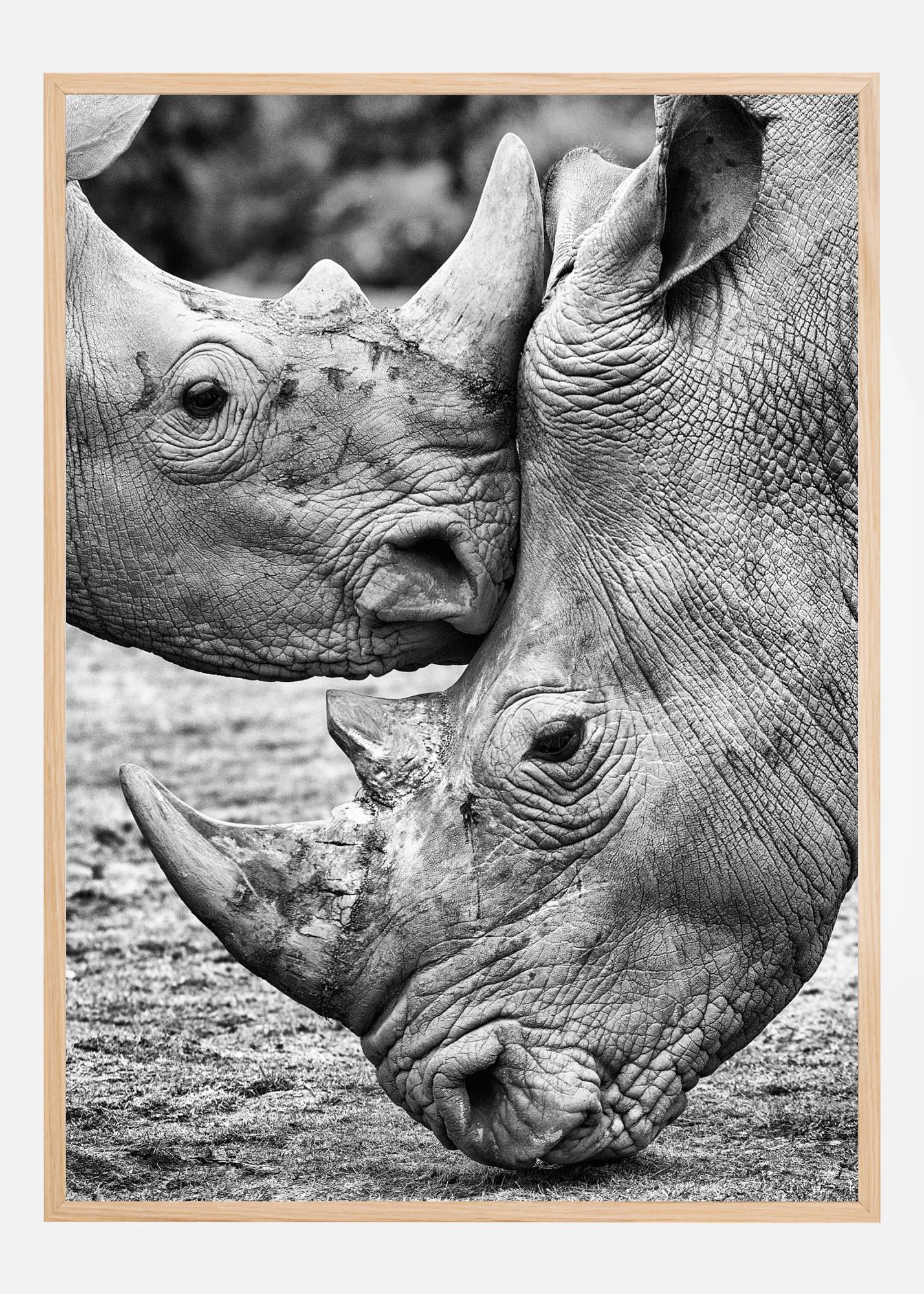 Um póster majestoso com dois rinocerontes de frente um para o outro. Traga a reverência e maravilha da natureza para a sua casa com essa incrível impressão. Sinta e desfrute da tranquilidade com esse póster.
