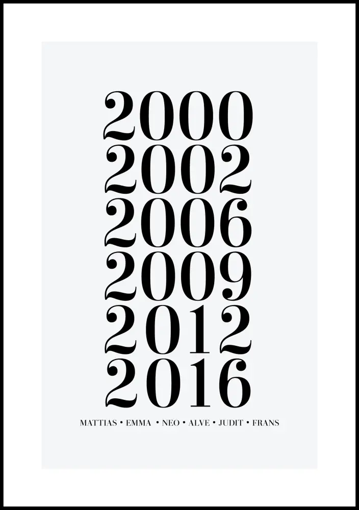 Um póster personalizado é um presente único e divertido, tanto para dar quanto para receber, e torna-se uma lembrança preciosa que será cuidada por muito tempo. Você só precisa preencher os campos acima com as informações que deseja incluir, e nós criaremos o seu póster personalizado!