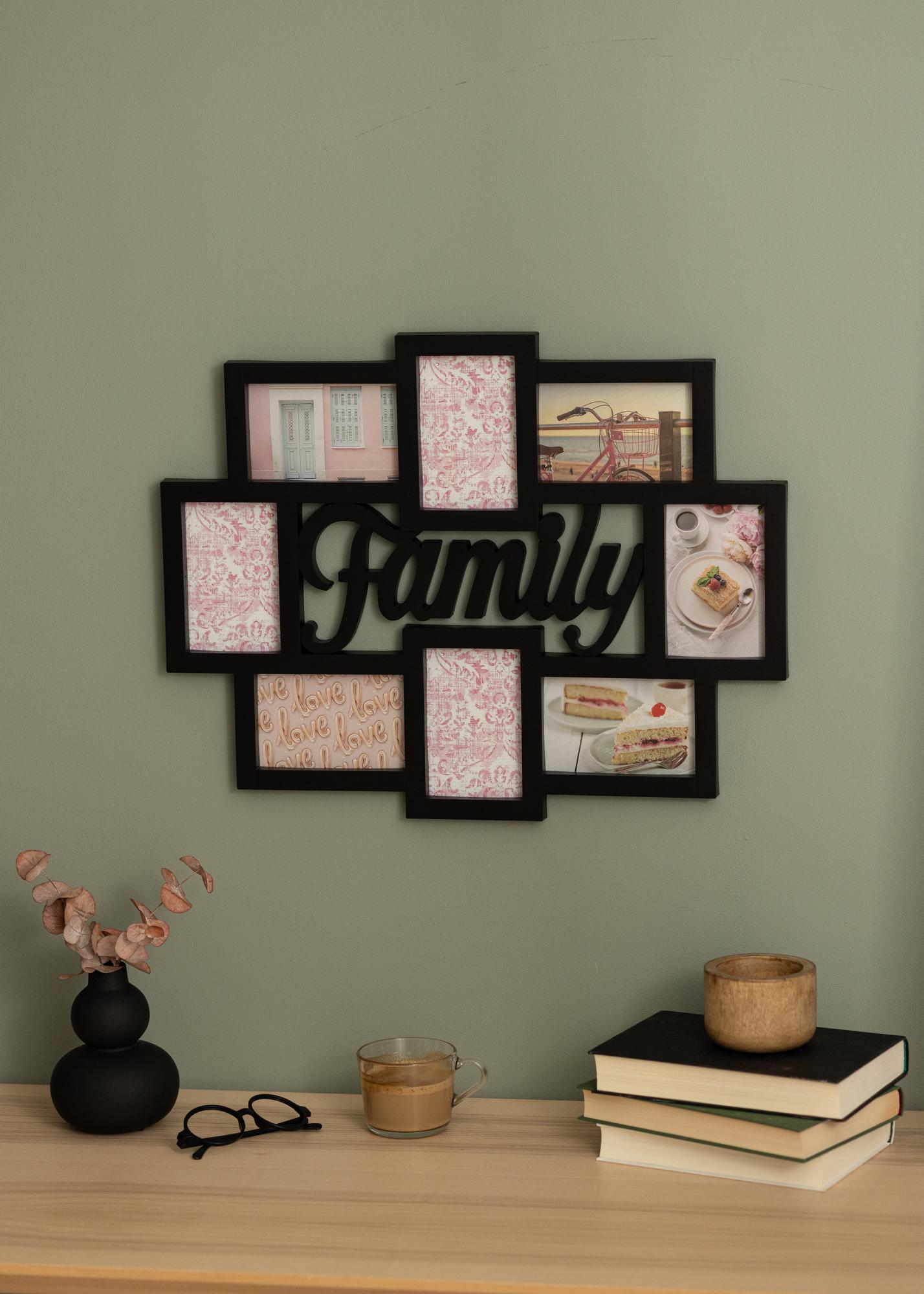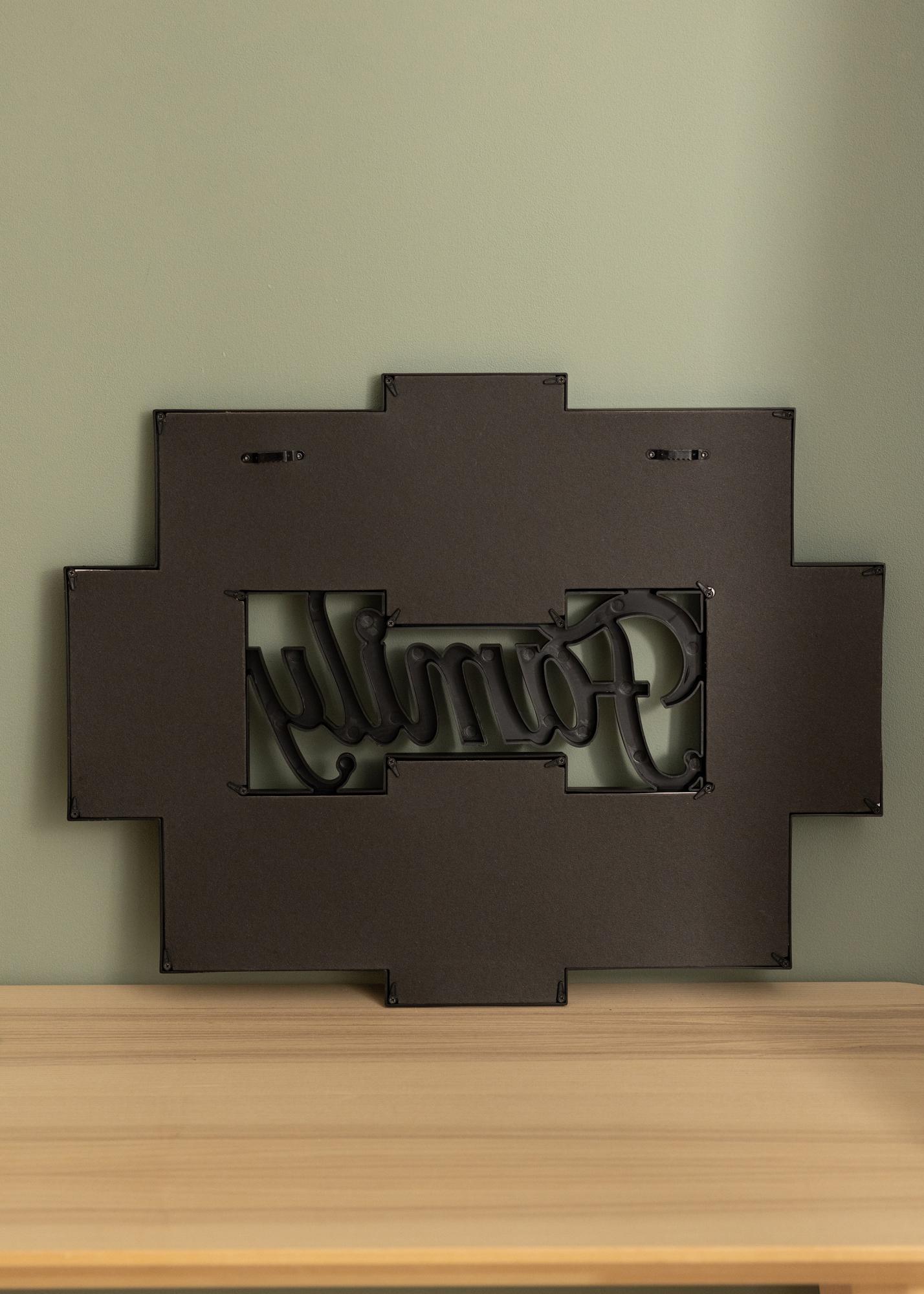 Pendure fotos de toda a família em um elegante quadro de colagem! Este quadro preto comporta 8 fotos de 10x15 cm, que são colocadas ao redor do texto "Família" que está recortado no centro do quadro. Há espaço para fotos nos formatos retrato e paisagem, para que possa ser mais flexível ao escolher quais imagens colocar no quadro. Para montar as suas fotos no quadro de colagem, solte a parte de trás do quadro, usando os clipes giratórios, e então Coloque facilmente suas fotos onde desejar.