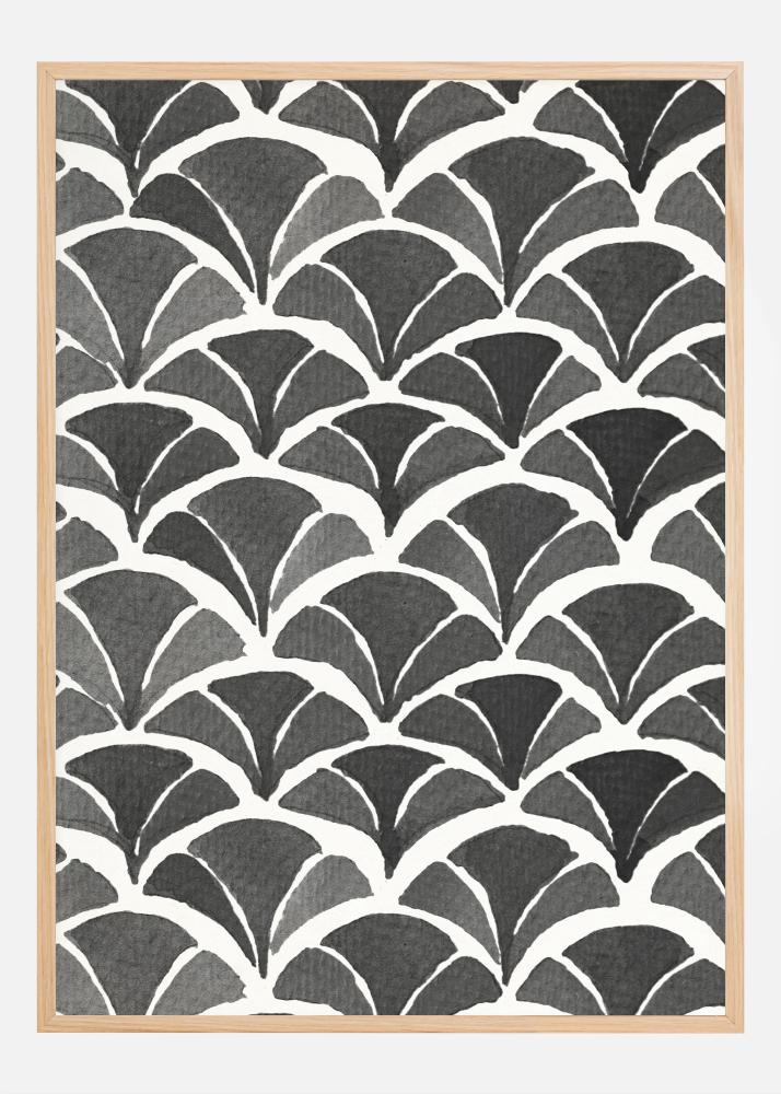 Dê ao seu espaço um toque de elegância artística com este pôster que apresenta um padrão cativante de penas de folhas em preto e branco. Esta impressão tem um padrão repetitivo que lembra leques vintage, dispostos ritmicamente por toda a superfície para criar uma sensação de movimento e simetria. O contraste elegante entre o preto e o branco dá um visual clássico que se encaixa em muitos estilos e ambientes de decoração diferentes.