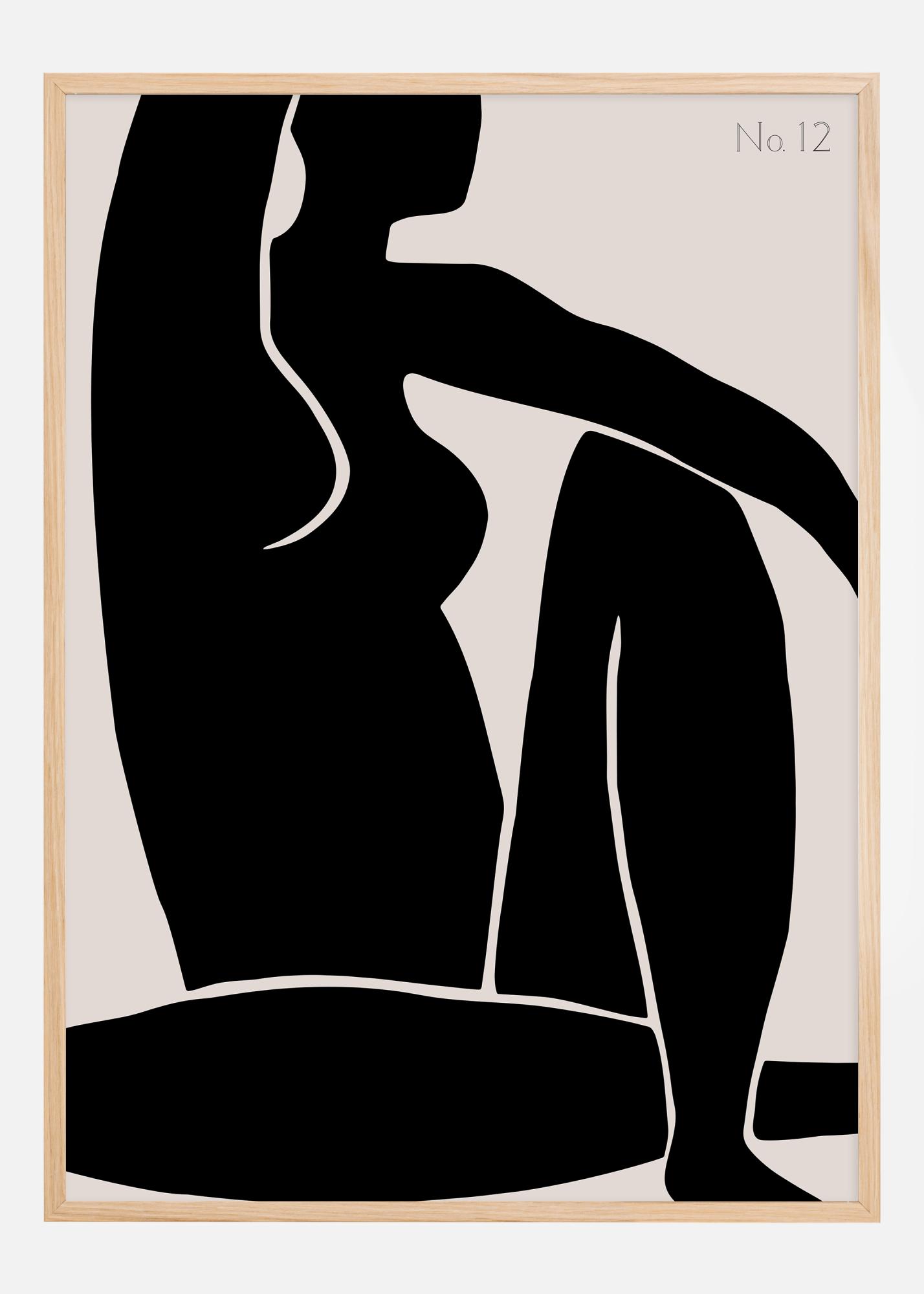 O contraste entre a figura preta e o fundo claro não é apenas ousado, ele também ilustra o encontro entre luz e sombra, forma e vazio, o que proporciona um forte efeito gráfico. 'No. 12' é um cartaz que é tanto uma experiência de arte moderna quanto um detalhe de decoração, perfeito para quem busca uma estética contemporânea com uma sugestão de drama. É ideal para estilos de decoração minimalistas ou monocromáticos, onde pode servir como um forte acento solitário ou ser combinado com outras obras semelhantes para criar uma parede de imagens impressionante.